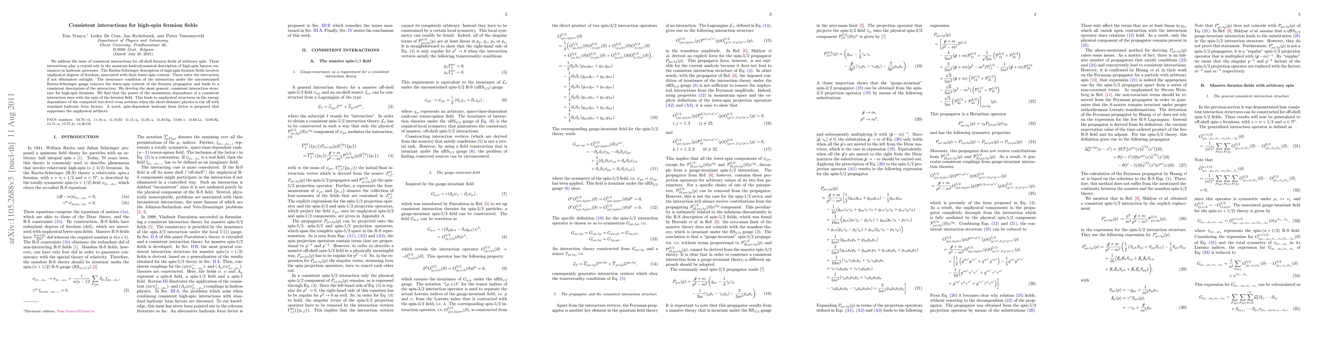 We address the issue of consistent interactions for off-shell fermion fields of arbitrary spin. These interactions play a crucial role in the quantum hadrodynamical description of high-spin baryon resonances in hadronic processes. The Rarita-Schwinger description of high-spin fermion fields involves unphysical degrees of freedom, associated with their lower-spin content. These enter the interaction if not eliminated outright. The invariance condition of the interaction under the unconstrained Rarita-Schwinger gauge removes the lower-spin content of the fermion propagator and leads to a consistent description of the interaction. We develop the most general, consistent interaction structure for high-spin fermions. We find that the power of the momentum dependence of a consistent interaction rises with the spin of the fermion field. This leads to unphysical structures in the energy dependence of the computed cross sections when the short-distance physics is cut off with standard hadronic form factors. A novel, spin-dependent hadronic form factor is proposed that suppresses the unphysical artifacts.