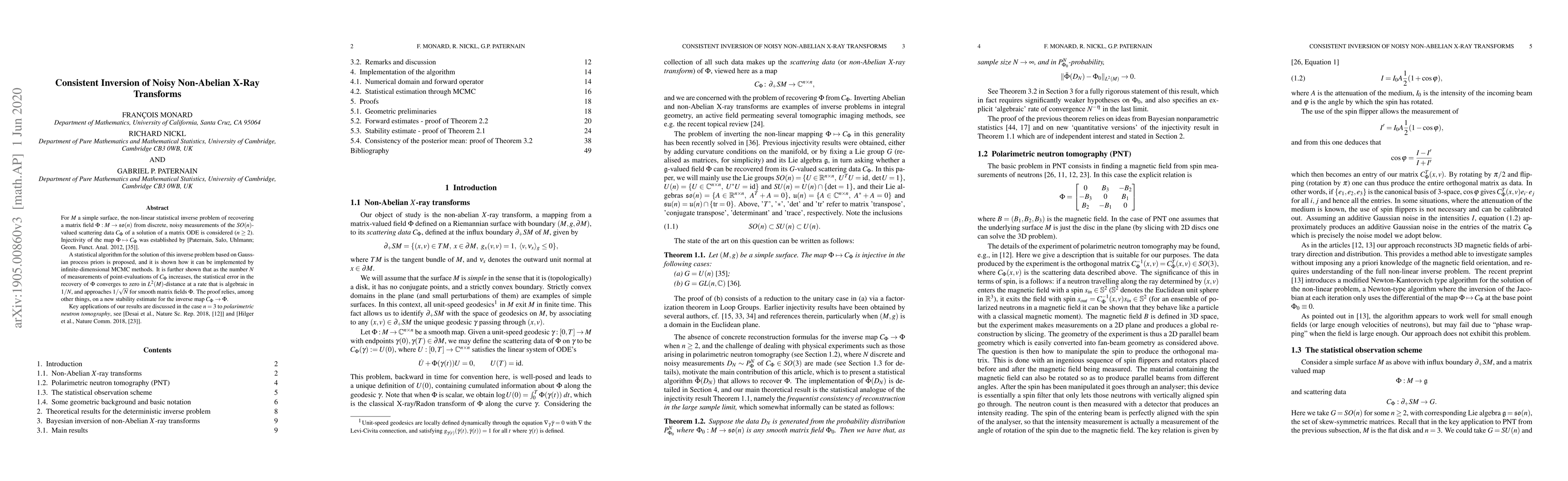 For $M$ a simple surface, the non-linear statistical inverse problem of recovering a matrix field $\Phi: M \to \mathfrak{so}(n)$ from discrete, noisy measurements of the $SO(n)$-valued scattering data $C_\Phi$ of a solution of a matrix ODE is considered ($n\geq 2$). Injectivity of the map $\Phi \mapsto C_\Phi$ was established by [Paternain, Salo, Uhlmann; Geom.Funct.Anal. 2012]. A statistical algorithm for the solution of this inverse problem based on Gaussian process priors is proposed, and it is shown how it can be implemented by infinite-dimensional MCMC methods. It is further shown that as the number $N$ of measurements of point-evaluations of $C_\Phi$ increases, the statistical error in the recovery of $\Phi$ converges to zero in $L^2(M)$-distance at a rate that is algebraic in $1/N$, and approaches $1/\sqrt N$ for smooth matrix fields $\Phi$. The proof relies, among other things, on a new stability estimate for the inverse map $C_\Phi \to \Phi$. Key applications of our results are discussed in the case $n=3$ to polarimetric neutron tomography, see [Desai et al., Nature Sc.Rep. 2018] and [Hilger et al., Nature Comm. 2018]