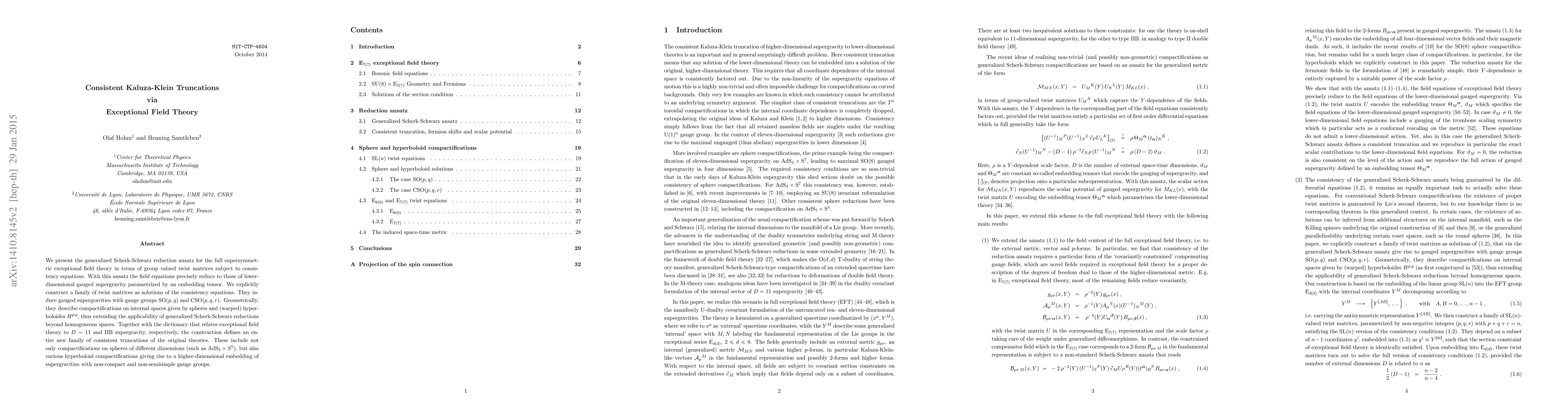 We present the generalized Scherk-Schwarz reduction ansatz for the full supersymmetric exceptional field theory in terms of group valued twist matrices subject to consistency equations. With this ansatz the field equations precisely reduce to those of lower-dimensional gauged supergravity parametrized by an embedding tensor. We explicitly construct a family of twist matrices as solutions of the consistency equations. They induce gauged supergravities with gauge groups SO(p,q) and CSO(p,q,r). Geometrically, they describe compactifications on internal spaces given by spheres and (warped) hyperboloides $H^{p,q}$, thus extending the applicability of generalized Scherk-Schwarz reductions beyond homogeneous spaces. Together with the dictionary that relates exceptional field theory to D=11 and IIB supergravity, respectively, the construction defines an entire new family of consistent truncations of the original theories. These include not only compactifications on spheres of different dimensions (such as AdS$_5\times S^5$), but also various hyperboloid compactifications giving rise to a higher-dimensional embedding of supergravities with non-compact and non-semisimple gauge groups.
