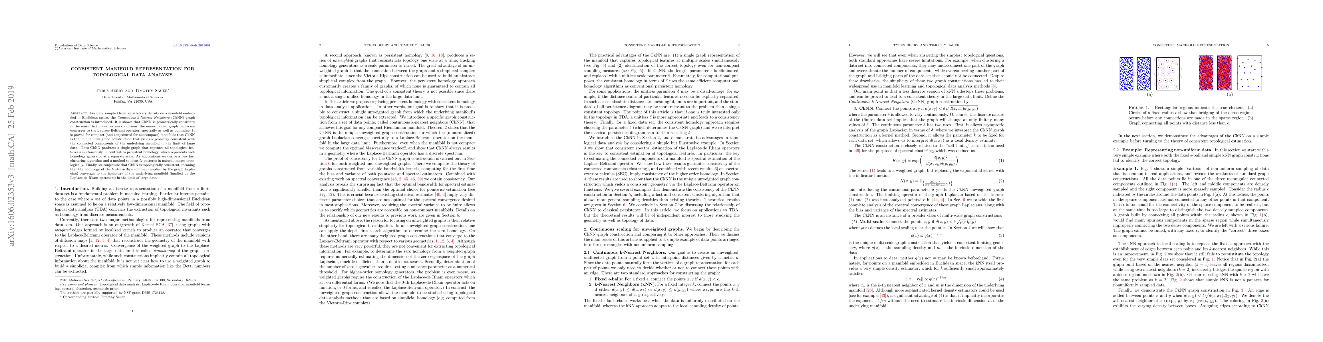 A new graph construction called CkNN is introduced for topological data analysis, which consistently represents a manifold in Euclidean space and captures its topological features simultaneously. It produces a single graph that converges to the underlying manifold's geometry as the data size increases.