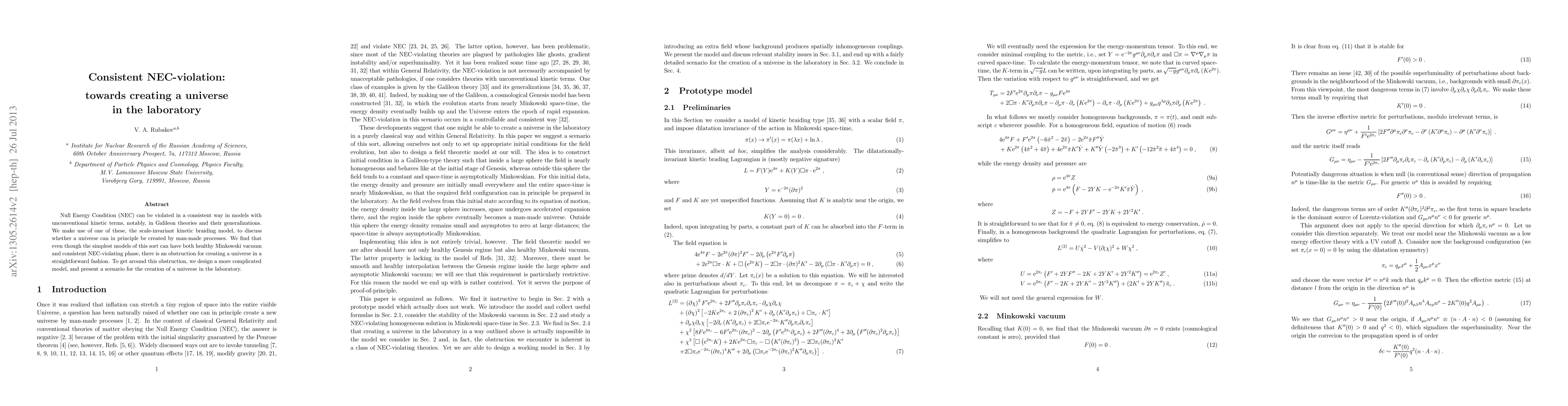 This paper explores the possibility of consistently violating the Null Energy Condition (NEC) in unconventional kinetic theories, specifically the scale-invariant kinetic braiding model. While simple models can exhibit both NEC-violating phases and a healthy Minkowski vacuum, straightforward universe creation is obstructed; a more complex model is proposed to potentially enable laboratory universe creation.