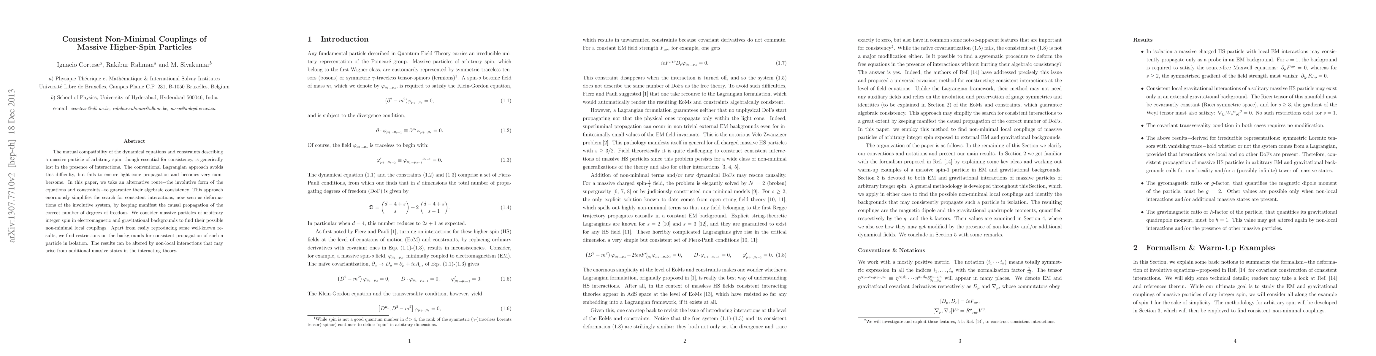 This paper explores consistent interactions for massive particles of arbitrary spin, using an involutive approach to ensure the algebraic consistency of equations and constraints. It finds restrictions on backgrounds for consistent propagation and discusses how non-local interactions might alter these results.