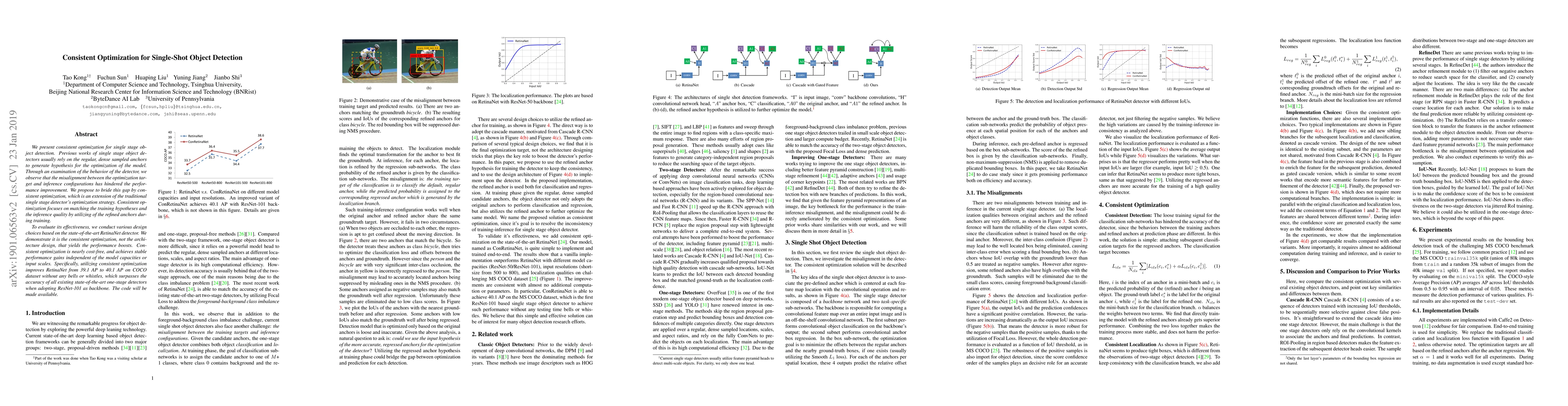 We present consistent optimization for single stage object detection. Previous works of single stage object detectors usually rely on the regular, dense sampled anchors to generate hypothesis for the optimization of the model. Through an examination of the behavior of the detector, we observe that the misalignment between the optimization target and inference configurations has hindered the performance improvement. We propose to bride this gap by consistent optimization, which is an extension of the traditional single stage detector's optimization strategy. Consistent optimization focuses on matching the training hypotheses and the inference quality by utilizing of the refined anchors during training. To evaluate its effectiveness, we conduct various design choices based on the state-of-the-art RetinaNet detector. We demonstrate it is the consistent optimization, not the architecture design, that yields the performance boosts. Consistent optimization is nearly cost-free, and achieves stable performance gains independent of the model capacities or input scales. Specifically, utilizing consistent optimization improves RetinaNet from 39.1 AP to 40.1 AP on COCO dataset without any bells or whistles, which surpasses the accuracy of all existing state-of-the-art one-stage detectors when adopting ResNet-101 as backbone. The code will be made available.