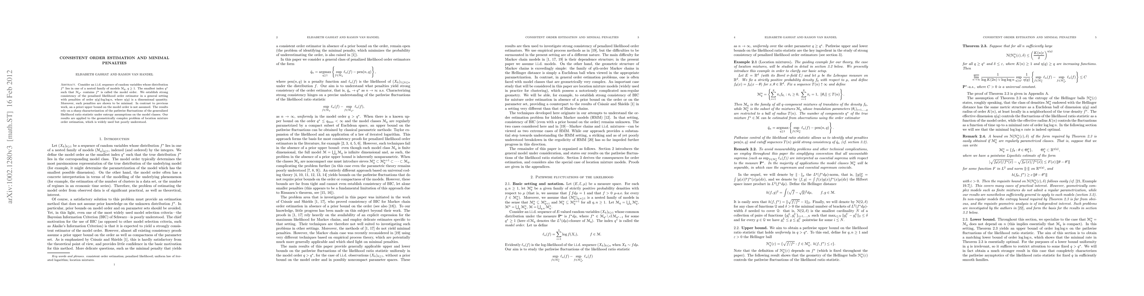 The paper establishes strong consistency of a penalized likelihood order estimator with penalties of minimal order, without assuming an a priori upper bound on the model order, in a general setting.