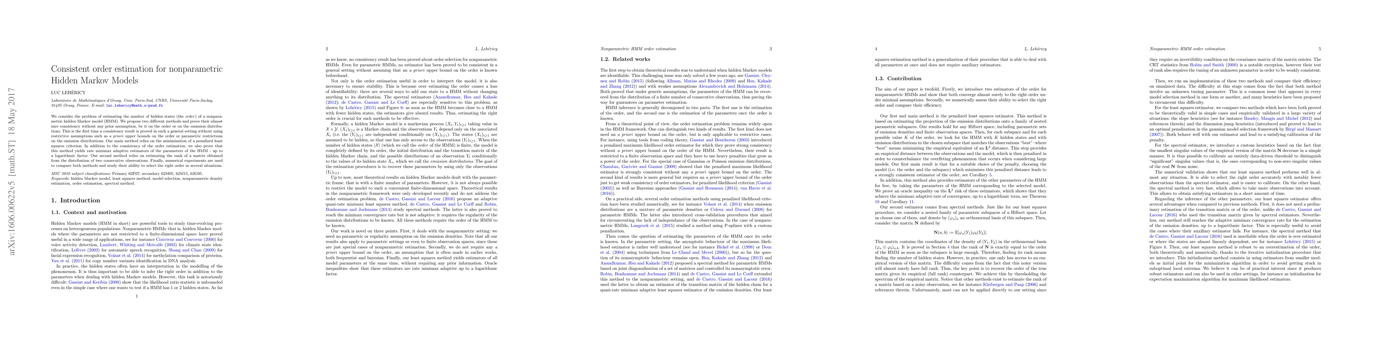 The paper introduces novel methods for consistent order estimation in nonparametric HMMs, proving their consistency without restrictive assumptions, and extending the applicability of HMMs in various fields.