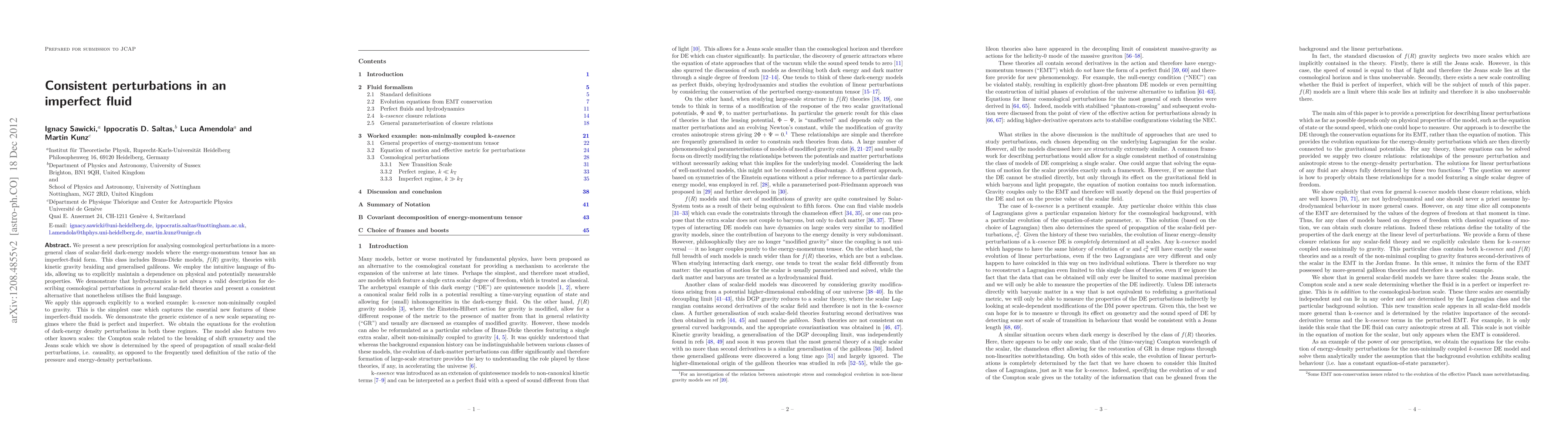 We present a new prescription for analysing cosmological perturbations in a more-general class of scalar-field dark-energy models where the energy-momentum tensor has an imperfect-fluid form. This class includes Brans-Dicke models, f(R) gravity, theories with kinetic gravity braiding and generalised galileons. We employ the intuitive language of fluids, allowing us to explicitly maintain a dependence on physical and potentially measurable properties. We demonstrate that hydrodynamics is not always a valid description for describing cosmological perturbations in general scalar-field theories and present a consistent alternative that nonetheless utilises the fluid language. We apply this approach explicitly to a worked example: k-essence non-minimally coupled to gravity. This is the simplest case which captures the essential new features of these imperfect-fluid models. We demonstrate the generic existence of a new scale separating regimes where the fluid is perfect and imperfect. We obtain the equations for the evolution of dark-energy density perturbations in both these regimes. The model also features two other known scales: the Compton scale related to the breaking of shift symmetry and the Jeans scale which we show is determined by the speed of propagation of small scalar-field perturbations, i.e. causality, as opposed to the frequently used definition of the ratio of the pressure and energy-density perturbations.
