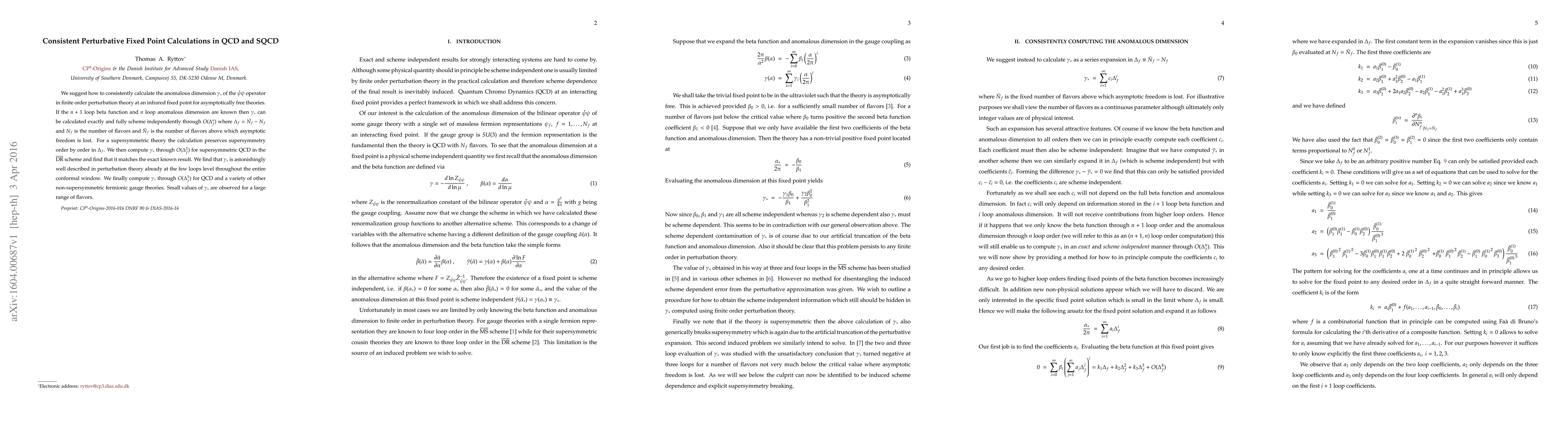 We suggest how to consistently calculate the anomalous dimension $\gamma_*$ of the $\bar{\psi}\psi$ operator in finite order perturbation theory at an infrared fixed point for asymptotically free theories. If the $n+1$ loop beta function and $n$ loop anomalous dimension are known then $\gamma_*$ can be calculated exactly and fully scheme independently through $O(\Delta_f^n )$ where $\Delta_f = \bar{N_f} - N_f$ and $N_f$ is the number of flavors and $\bar{N}_f$ is the number of flavors above which asymptotic freedom is lost. For a supersymmetric theory the calculation preserves supersymmetry order by order in $\Delta_f$. We then compute $\gamma_*$ through $O(\Delta_f^2)$ for supersymmetric QCD in the $\overline{\text{DR}}$ scheme and find that it matches the exact known result. We find that $\gamma_*$ is astonishingly well described in perturbation theory already at the few loops level throughout the entire conformal window. We finally compute $\gamma_*$ through $O(\Delta_f^3)$ for QCD and a variety of other non-supersymmetric fermionic gauge theories. Small values of $\gamma_*$ are observed for a large range of flavors.