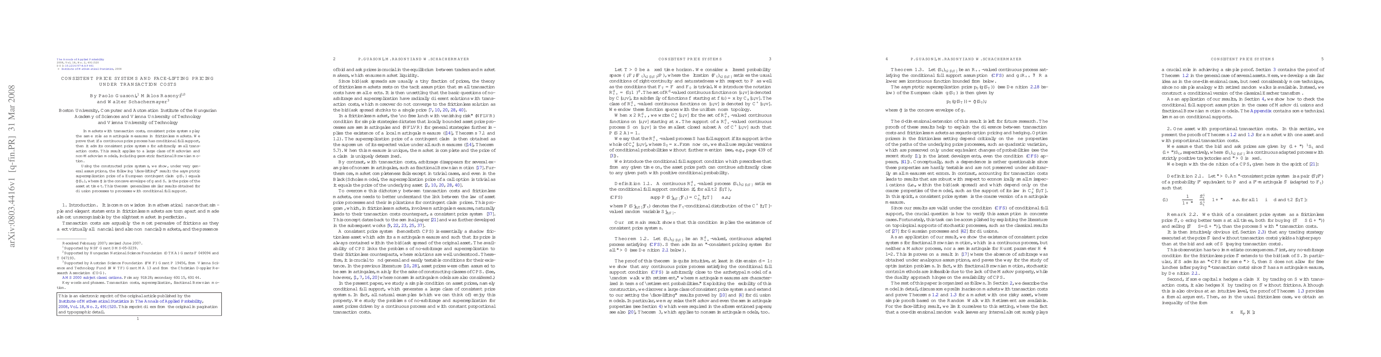 This paper explores consistent price systems in markets with transaction costs, proving their existence for continuous price processes with conditional full support. It also demonstrates a "face-lifting" pricing result, showing that the asymptotic superreplication price of a European contingent claim matches the concave envelope of the claim's payoff function.
