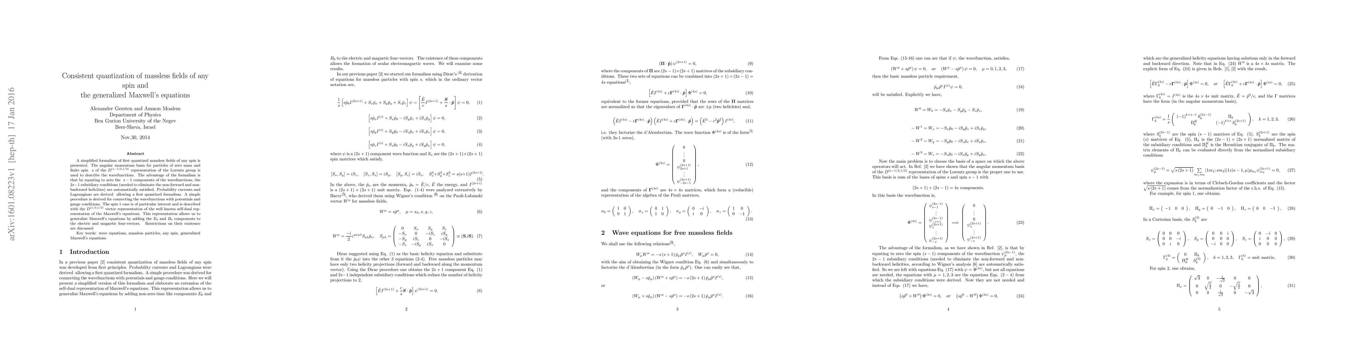 Researchers develop a simplified formalism for massless fields of any spin, allowing the derivation of probability currents and Lagrangians, with implications for generalizing Maxwell's equations.