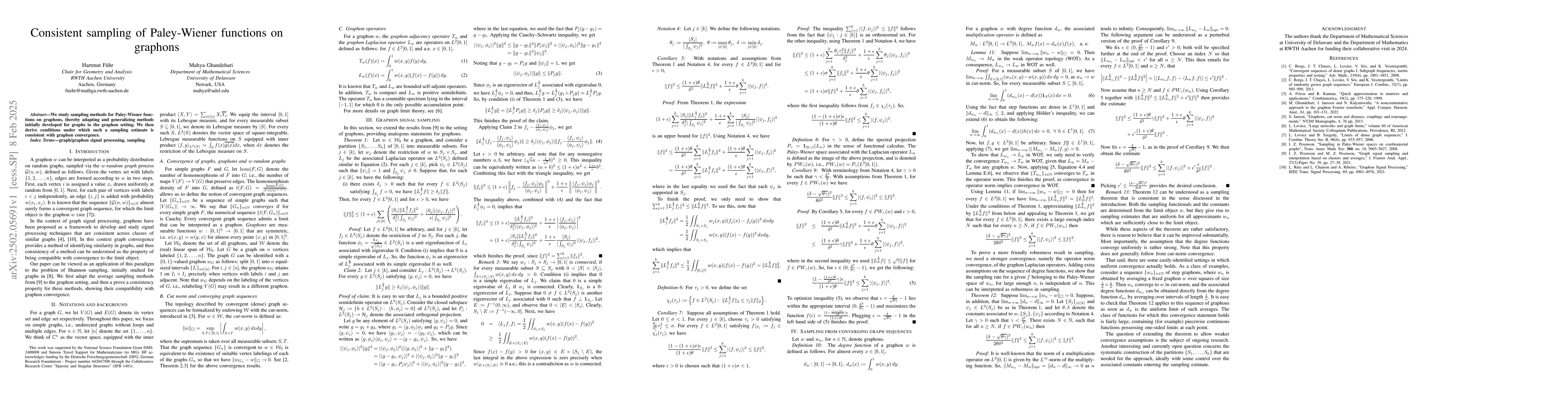 The research adapts sampling methods for Paley-Wiener functions from graphs to graphons, deriving conditions for consistent sampling estimates with graphon convergence.