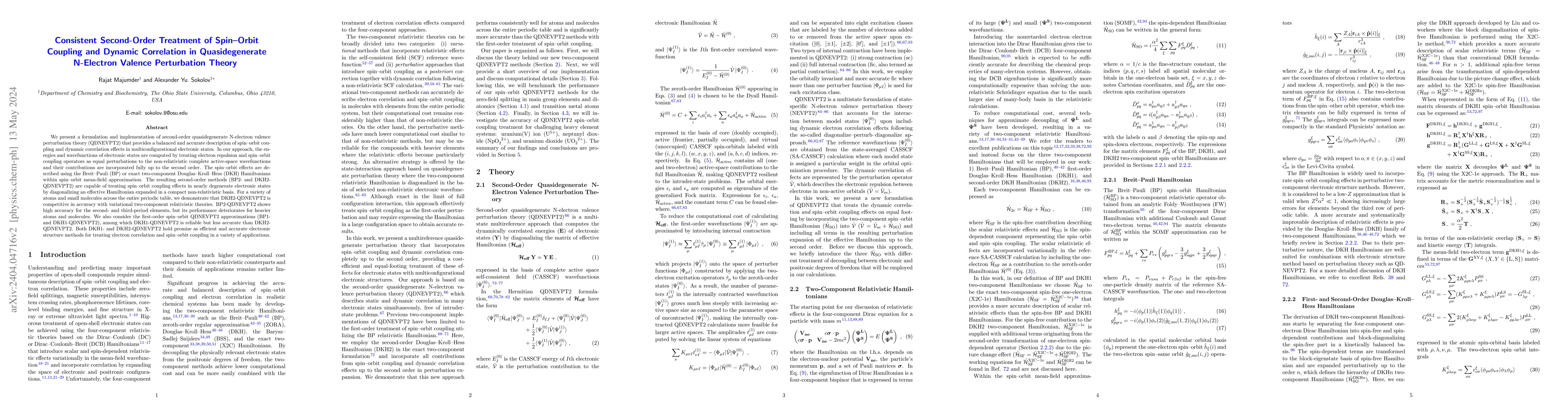 This paper introduces a second-order quasidegenerate N-electron valence perturbation theory (QDNEVPT2) that accurately describes spin-orbit coupling and dynamic correlation in multiconfigurational states. DKH2-QDNEVPT2 proves competitive in accuracy with variational relativistic theories, while DKH1-QDNEVPT2 offers a reliable but less accurate alternative, especially for heavier elements.