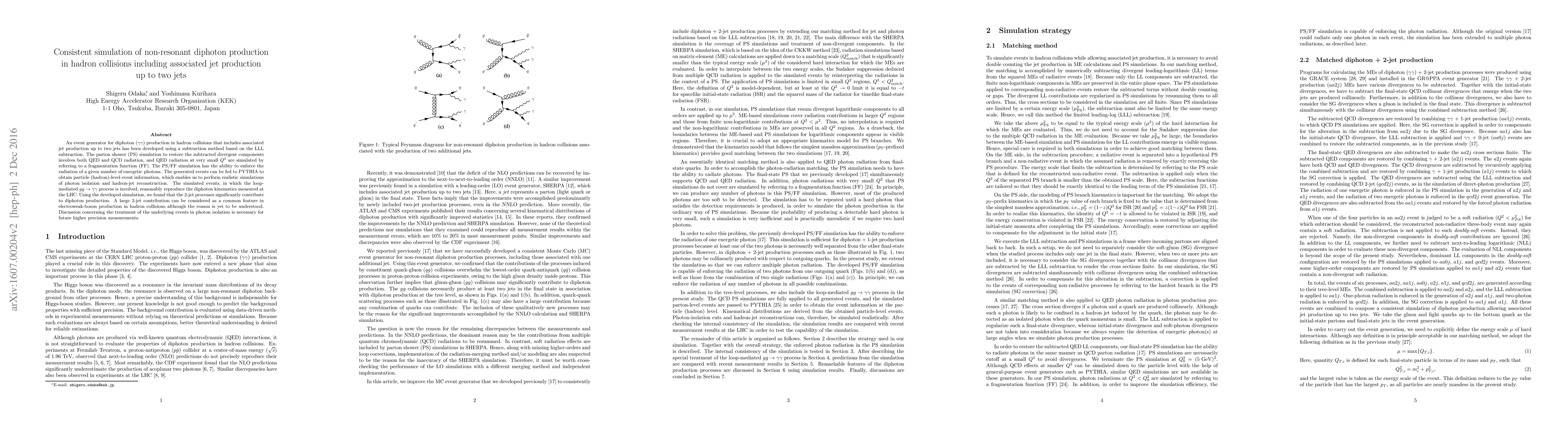 An event generator for diphoton ($\gamma\gamma$) production in hadron collisions that includes associated jet production up to two jets has been developed using a subtraction method based on the LLL subtraction. The parton shower (PS) simulation to restore the subtracted divergent components involves both QED and QCD radiation, and QED radiation at very small $Q^{2}$ are simulated by referring to a fragmentation function (FF). The PS/FF simulation has the ability to enforce the radiation of a given number of energetic photons. The generated events can be fed to PYTHIA to obtain particle (hadron)-level event information, which enables us to perform realistic simulations of photon isolation and hadron-jet reconstruction. The simulated events, in which the loop-mediated $gg \rightarrow \gamma\gamma$ process is involved, reasonably reproduce the diphoton kinematics measured at the LHC. Using the developed simulation, we found that the 2-jet processes significantly contribute to diphoton production. A large 2-jet contribution can be considered as a common feature in electroweak-boson production in hadron collisions although the reason is yet to be understood. Discussion concerning the treatment of the underlying events in photon isolation is necessary for future higher precision measurements.