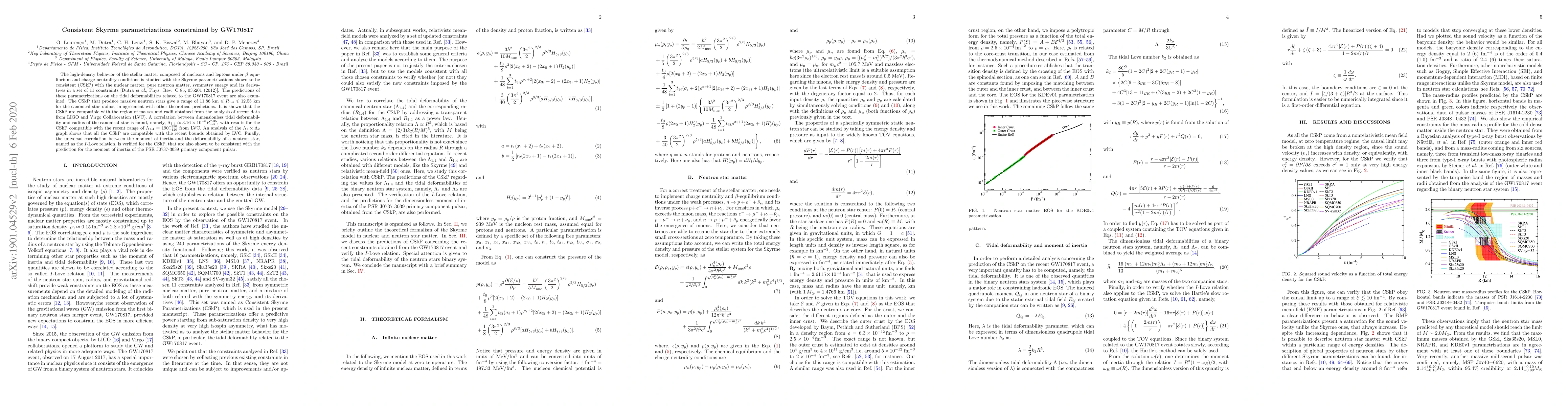 The high-density behavior of the stellar matter composed of nucleons and leptons under $\beta$~equilibrium and charge neutrality conditions is studied with the Skyrme parametrizations shown to be consistent (CSkP) with the nuclear matter, pure neutron matter, symmetry energy and its derivatives in a set of $11$ constraints [Dutra {\it et al.}, Phys. Rev. C 85, 035201 (2012)]. The predictions of these parametrizations on the tidal deformabilities related to the GW170817 event are also examined. The CSkP that produce massive neutron stars give a range of $11.86~\mbox{km} \leqslant R_{1.4} \leqslant 12.55~\mbox{km}$ for the canonical star radius, in agreement with other theoretical predictions. It is shown that the CSkP are compatible with the region of masses and radii obtained from the analysis of recent data from LIGO and Virgo Collaboration (LVC). A correlation between dimensionless tidal deformability and radius of the canonical star is found, namely, $\Lambda_{1.4} \approx 3.16\times10^{-6}R_{1.4}^{7.35}$, with results for the CSkP compatible with the recent range of $\Lambda_{1.4}=190_{-120}^{+390}$ from LVC. An analysis of the $\Lambda_1\times\Lambda_2$ graph shows that all the CSkP are compatible with the recent bounds obtained by LVC. Finally, the universal correlation between the moment of inertia and the deformability of a neutron star, named as the \mbox{$I$-Love} relation, is verified for the CSkP, that are also shown to be consistent with the prediction for the moment of inertia of the \mbox{PSR J0737-3039} primary component pulsar.