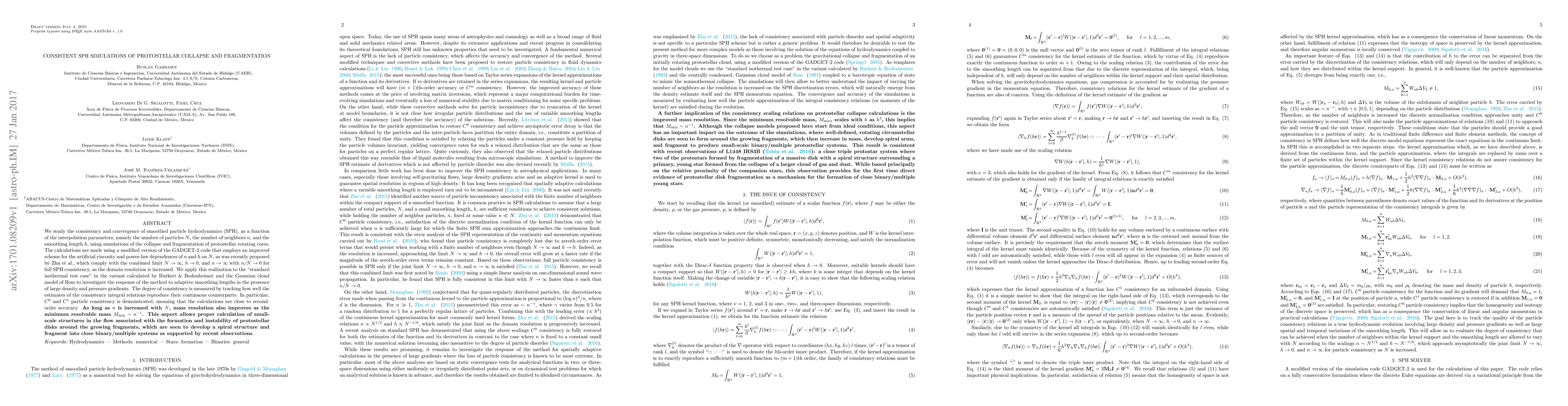 This paper investigates the consistency and convergence of smoothed particle hydrodynamics (SPH) simulations of protostellar collapse and fragmentation, focusing on the effects of particle number, neighbor count, and smoothing length. The study demonstrates near second-order accuracy and proper mass resolution, enabling accurate modeling of protostellar disk formation and fragmentation into binary/multiple systems.