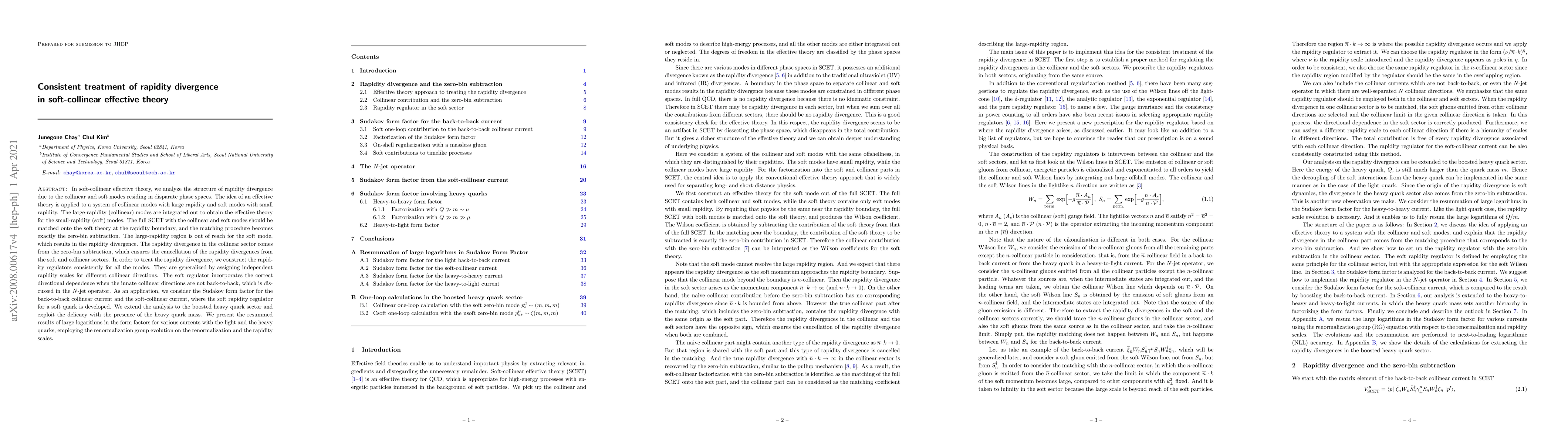 In soft-collinear effective theory, we analyze the structure of rapidity divergence due to the collinear and soft modes residing in disparate phase spaces. The idea of an effective theory is applied to a system of collinear modes with large rapidity and soft modes with small rapidity. The large-rapidity (collinear) modes are integrated out to obtain the effective theory for the small-rapidity (soft) modes. The full SCET with the collinear and soft modes should be matched onto the soft theory at the rapidity boundary, and the matching procedure becomes exactly the zero-bin subtraction. The large-rapidity region is out of reach for the soft mode, which results in the rapidity divergence. The rapidity divergence in the collinear sector comes from the zero-bin subtraction, which ensures the cancellation of the rapidity divergences from the soft and collinear sectors. In order to treat the rapidity divergence, we construct the rapidity regulators consistently for all the modes. They are generalized by assigning independent rapidity scales for different collinear directions. The soft regulator incorporates the correct directional dependence when the innate collinear directions are not back-to-back, which is discussed in the $N$-jet operator. As an application, we consider the Sudakov form factor for the back-to-back collinear current and the soft-collinear current, where the soft rapidity regulator for a soft quark is developed. We extend the analysis to the boosted heavy quark sector and exploit the delicacy with the presence of the heavy quark mass. We present the resummed results of large logarithms in the form factors for various currents with the light and the heavy quarks, employing the renormalization group evolution on the renormalization and the rapidity scales.