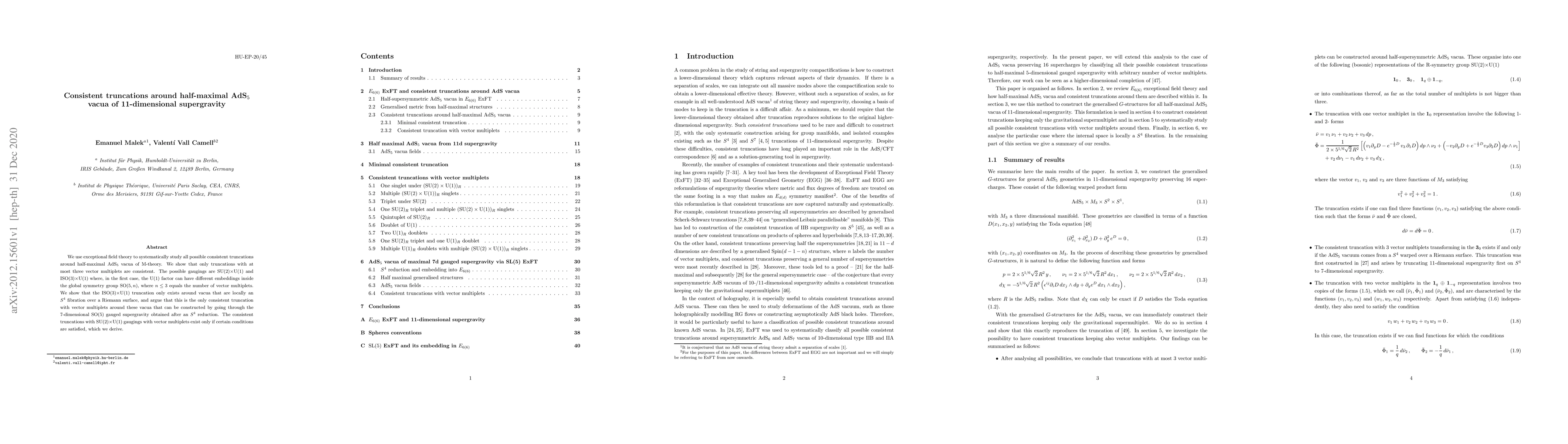 This paper systematically investigates consistent truncations around half-maximal AdS$_5$ vacua of 11-dimensional supergravity using exceptional field theory, finding that only truncations with up to three vector multiplets are possible, specifically with SU(2)$\times$U(1) or ISO(3)$\times$U(1) gaugings.