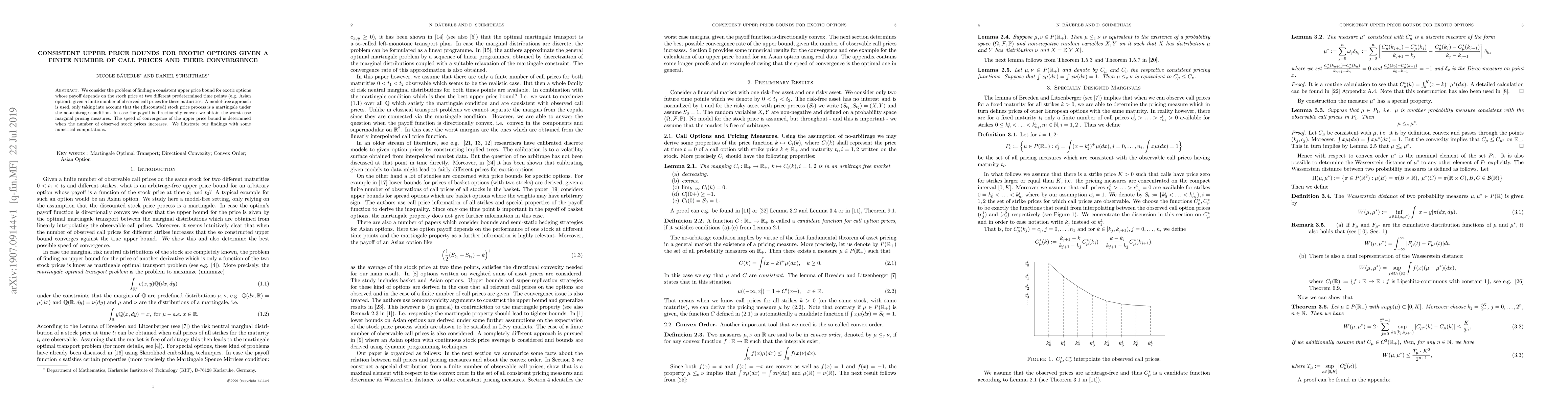 This paper develops a model-free approach to find consistent upper price bounds for exotic options given a finite number of call prices and their convergence.