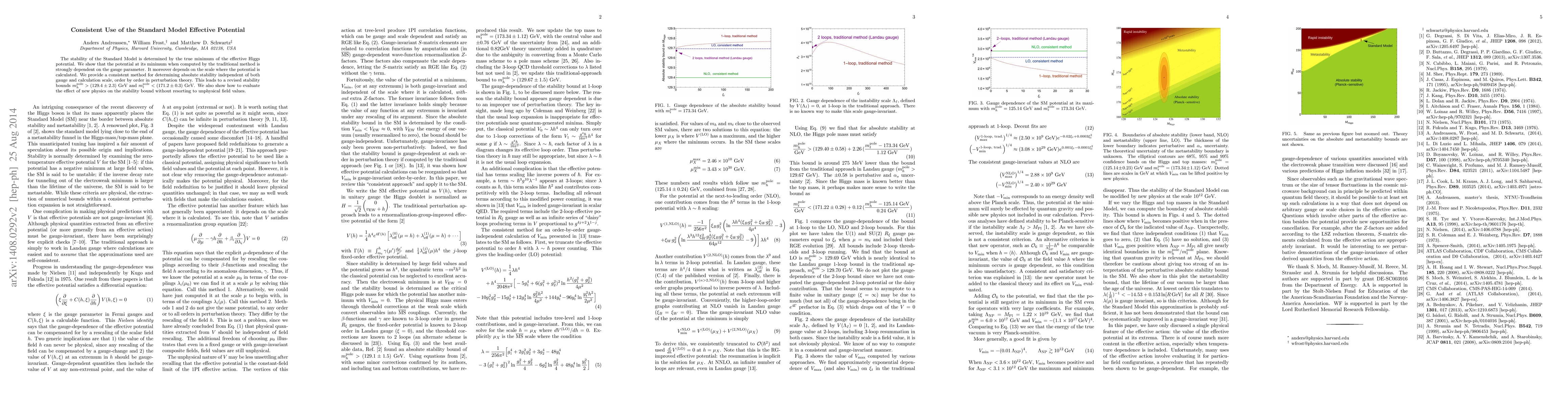 The stability of the Standard Model is determined by the true minimum of the effective Higgs potential. We show that the potential at its minimum when computed by the traditional method is strongly dependent on the gauge parameter. It moreover depends on the scale where the potential is calculated. We provide a consistent method for determining absolute stability independent of both gauge and calculation scale, order by order in perturbation theory. This leads to a revised stability bounds mH > (129.4 \pm 2.3) GeV and mt < (171.2 \pm 0.3)GeV. We also show how to evaluate the effect of new physics on the stability bound without resorting to unphysical field values.