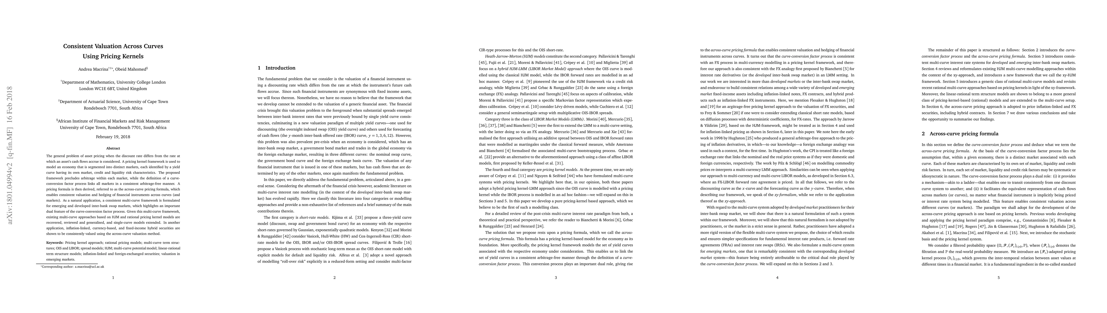 The general problem of asset pricing when the discount rate differs from the rate at which an asset's cash flows accrue is considered. A pricing kernel framework is used to model an economy that is segmented into distinct markets, each identified by a yield curve having its own market, credit and liquidity risk characteristics. The proposed framework precludes arbitrage within each market, while the definition of a curve-conversion factor process links all markets in a consistent arbitrage-free manner. A pricing formula is then derived, referred to as the across-curve pricing formula, which enables consistent valuation and hedging of financial instruments across curves (and markets). As a natural application, a consistent multi-curve framework is formulated for emerging and developed inter-bank swap markets, which highlights an important dual feature of the curve-conversion factor process. Given this multi-curve framework, existing multi-curve approaches based on HJM and rational pricing kernel models are recovered, reviewed and generalised, and single-curve models extended. In another application, inflation-linked, currency-based, and fixed-income hybrid securities are shown to be consistently valued using the across-curve valuation method.