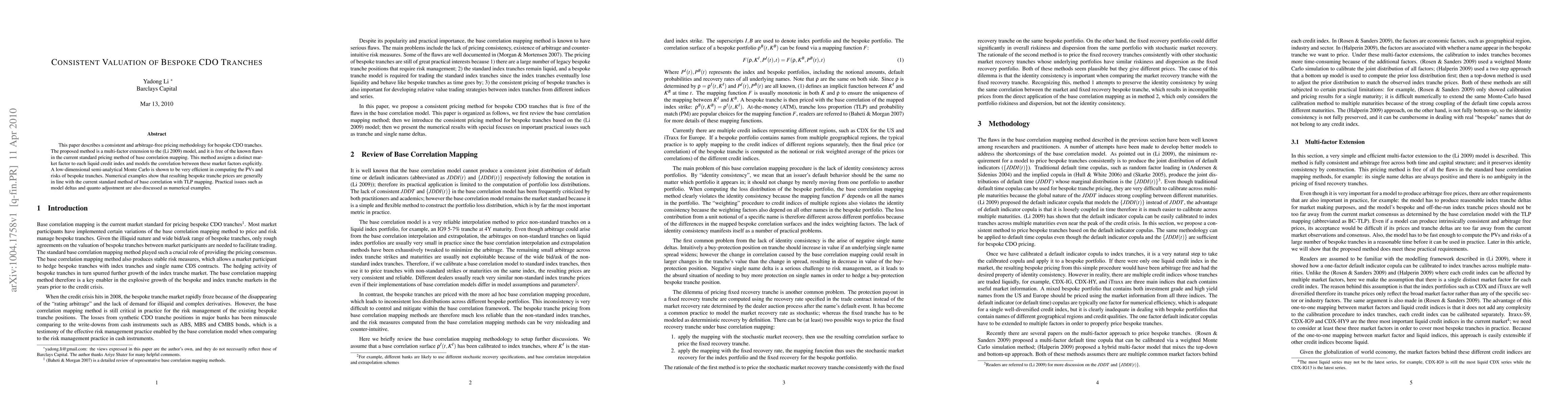 This paper describes a consistent and arbitrage-free pricing methodology for bespoke CDO tranches. The proposed method is a multi-factor extension to the (Li 2009) model, and it is free of the known flaws in the current standard pricing method of base correlation mapping. This method assigns a distinct market factor to each liquid credit index and models the correlation between these market factors explicitly. A low-dimensional semi-analytical Monte Carlo is shown to be very efficient in computing the PVs and risks of bespoke tranches. Numerical examples show that resulting bespoke tranche prices are generally in line with the current standard method of base correlation with TLP mapping. Practical issues such as model deltas and quanto adjustment are also discussed as numerical examples.