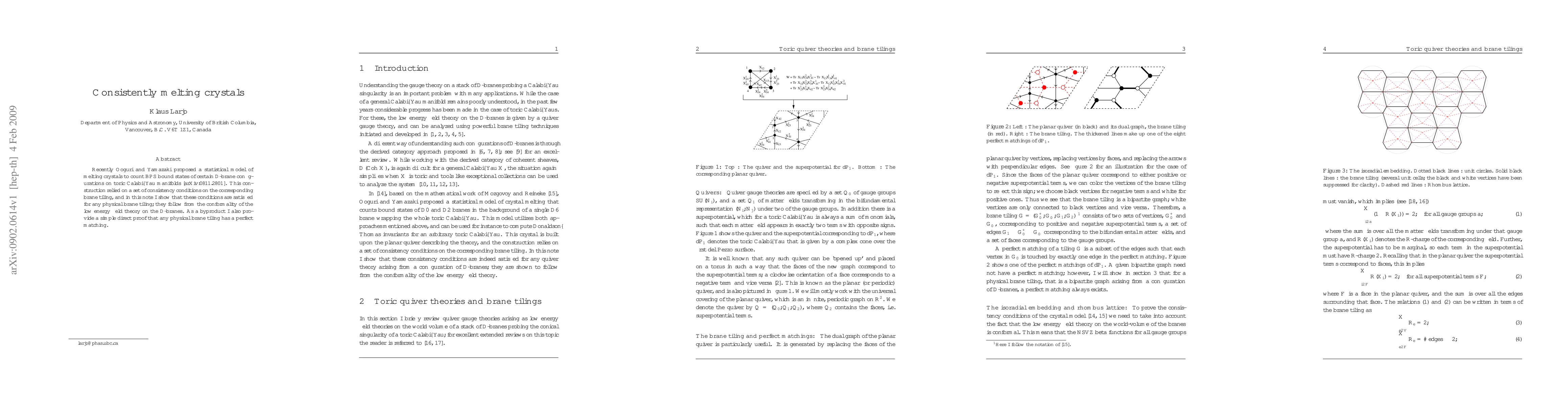 Recently Ooguri and Yamazaki proposed a statistical model of melting crystals to count BPS bound states of certain D-brane configurations on toric Calabi--Yau manifolds [arXiv:0811.2801]. This construction relied on a set of consistency conditions on the corresponding brane tiling, and in this note I show that these conditions are satisfied for any physical brane tiling; they follow from the conformality of the low energy field theory on the D-branes. As a byproduct I also provide a simple direct proof that any physical brane tiling has a perfect matching.