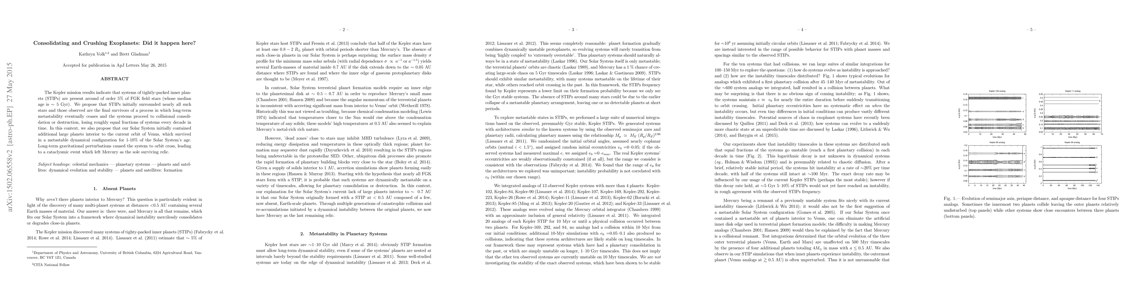 The Kepler mission results indicate that systems of tightly-packed inner planets (STIPs) are present around of order 5% of FGK field stars (whose median age is ~5 Gyr). We propose that STIPs initially surrounded nearly all such stars and those observed are the final survivors of a process in which long-term metastability eventually ceases and the systems proceed to collisional consolidation or destruction, losing roughly equal fractions of systems every decade in time. In this context, we also propose that our Solar System initially contained additional large planets interior to the current orbit of Venus, which survived in a metastable dynamical configuration for 1-10% of the Solar System's age. Long-term gravitational perturbations caused the system to orbit cross, leading to a cataclysmic event which left Mercury as the sole surviving relic.