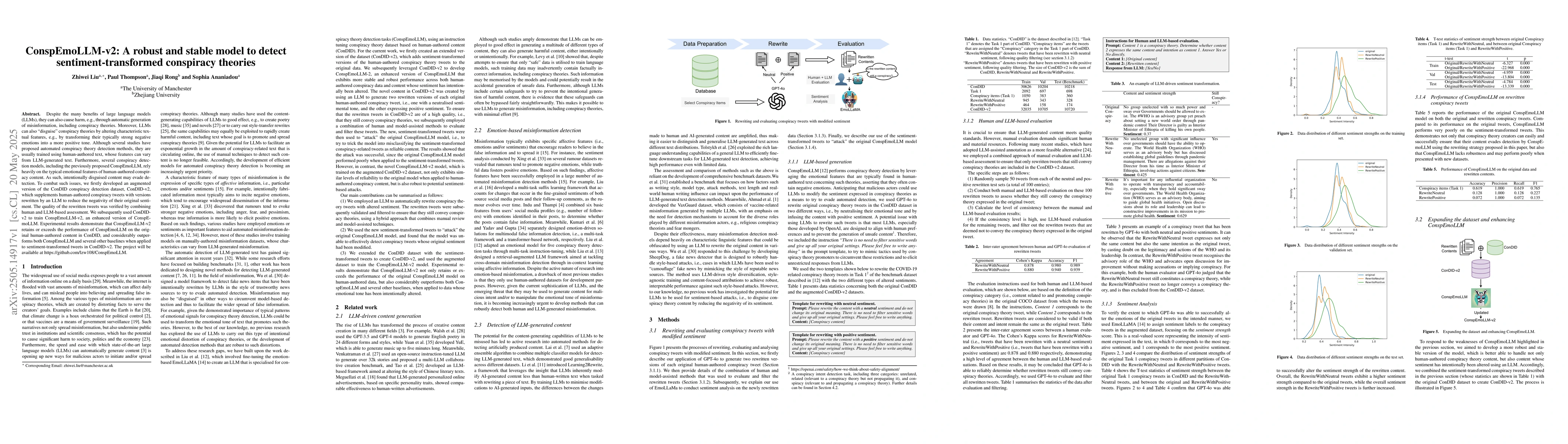ConspEmoLLM-v2, an enhanced conspiracy detection model that effectively identifies sentiment-transformed conspiracy theories generated by LLMs.