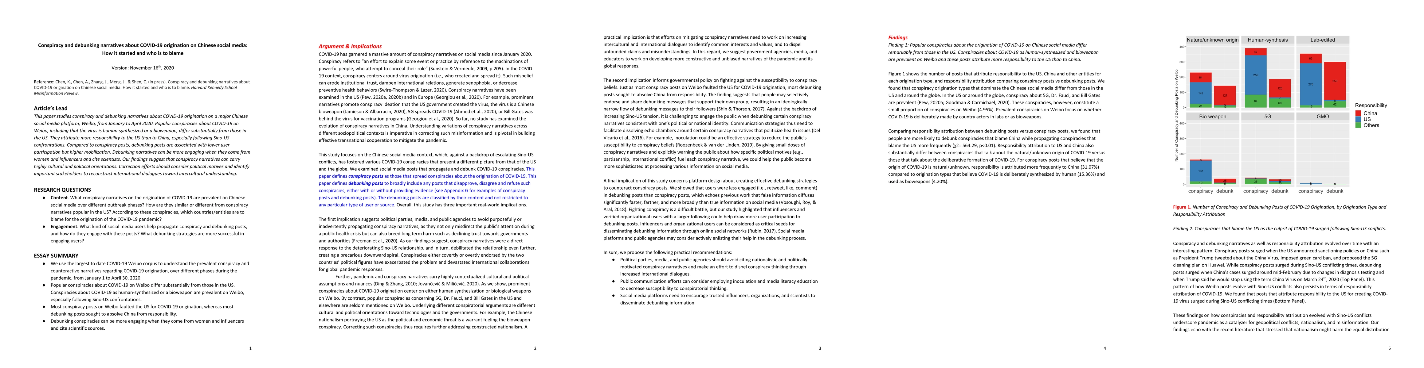 This paper examines conspiracy and debunking narratives about COVID-19's origins on Chinese social media platform Weibo, revealing distinct cultural and political orientations. Debunking efforts, particularly from women and influencers citing scientists, are more effective despite lower user participation.