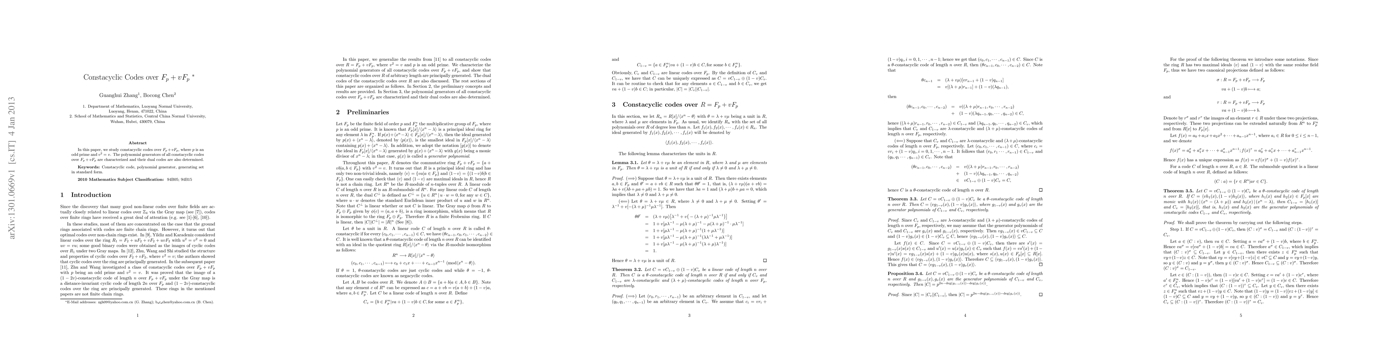 This paper characterizes the polynomial generators of constacyclic codes over the ring $F_p+vF_p$, where $p$ is an odd prime and $v^2=v$, and determines the dual codes of these constacyclic codes.