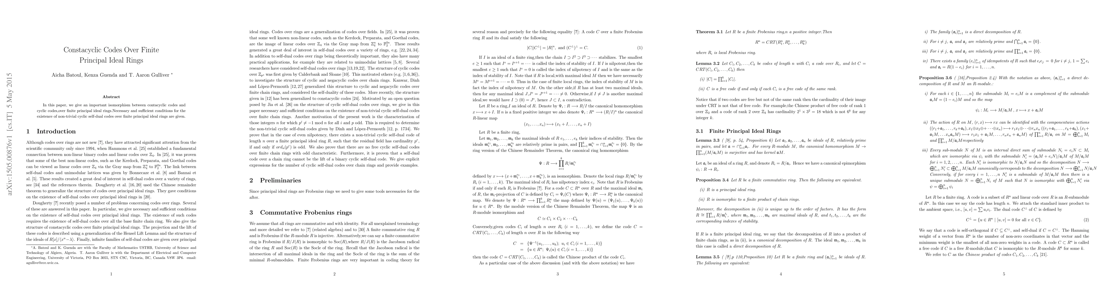 This paper establishes an isomorphism between contacyclic codes and cyclic codes over finite principal ideal rings and provides necessary and sufficient conditions for the existence of non-trivial cyclic self-dual codes in this context.