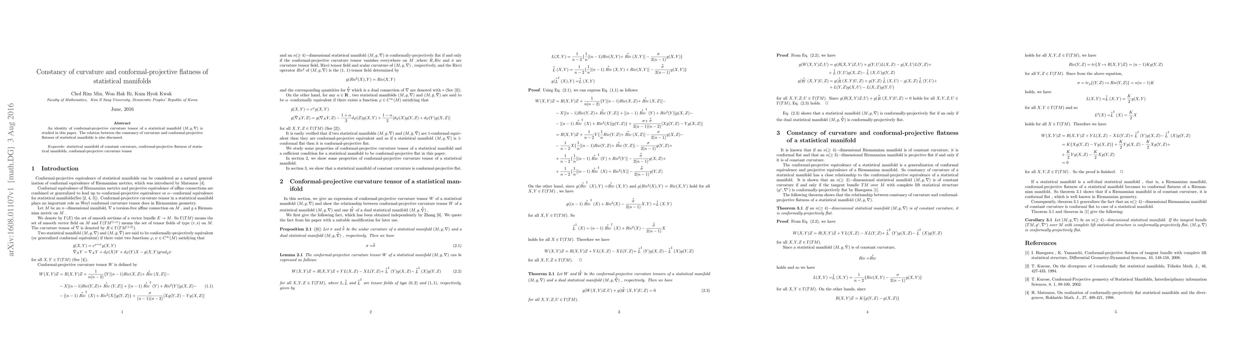 Summary: This paper investigates the conformal-projective curvature tensor of statistical manifolds, establishing an identity and exploring the connection between curvature constancy and conformal-projective flatness.