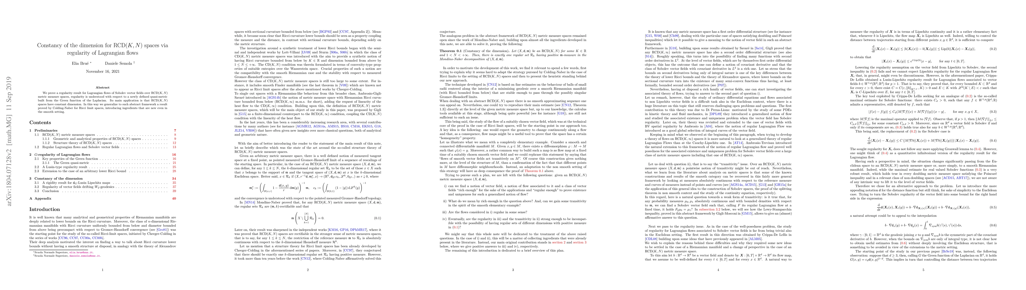 We prove a regularity result for Lagrangian flows of Sobolev vector fields over RCD(K,N) metric measure spaces, regularity is understood with respect to a newly defined quasi-metric built from the Green function of the Laplacian. Its main application is that RCD(K,N) spaces have constant dimension. In this way we generalize to such abstract framework a result proved by Colding-Naber for Ricci limit spaces, introducing ingredients that are new even in the smooth setting.