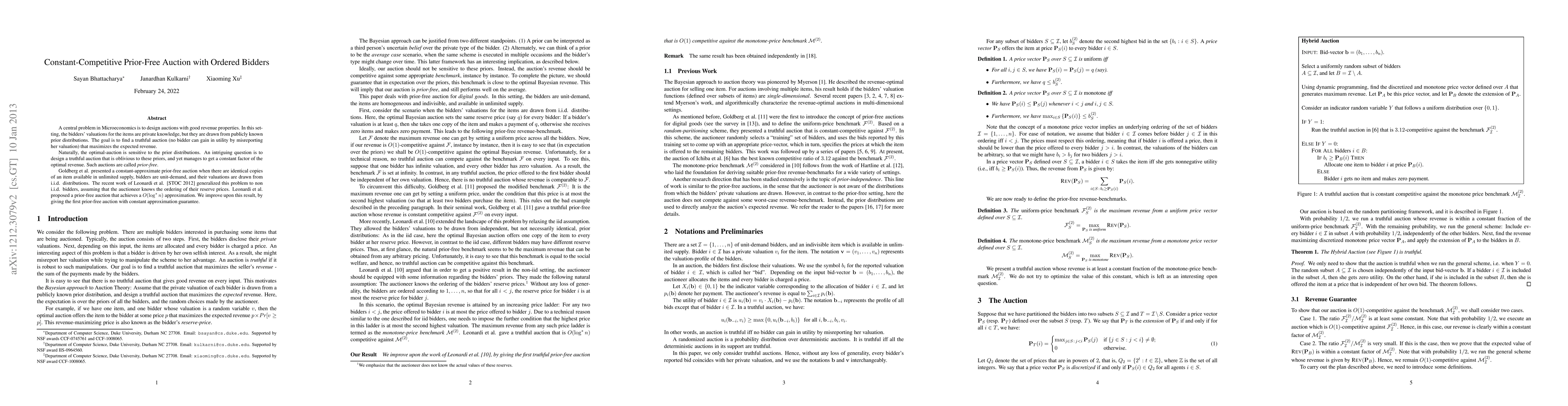A central problem in Microeconomics is to design auctions with good revenue properties. In this setting, the bidders' valuations for the items are private knowledge, but they are drawn from publicly known prior distributions. The goal is to find a truthful auction (no bidder can gain in utility by misreporting her valuation) that maximizes the expected revenue. Naturally, the optimal-auction is sensitive to the prior distributions. An intriguing question is to design a truthful auction that is oblivious to these priors, and yet manages to get a constant factor of the optimal revenue. Such auctions are called prior-free. Goldberg et al. presented a constant-approximate prior-free auction when there are identical copies of an item available in unlimited supply, bidders are unit-demand, and their valuations are drawn from i.i.d. distributions. The recent work of Leonardi et al. [STOC 2012] generalized this problem to non i.i.d. bidders, assuming that the auctioneer knows the ordering of their reserve prices. Leonardi et al. proposed a prior-free auction that achieves a $O(\log^* n)$ approximation. We improve upon this result, by giving the first prior-free auction with constant approximation guarantee.