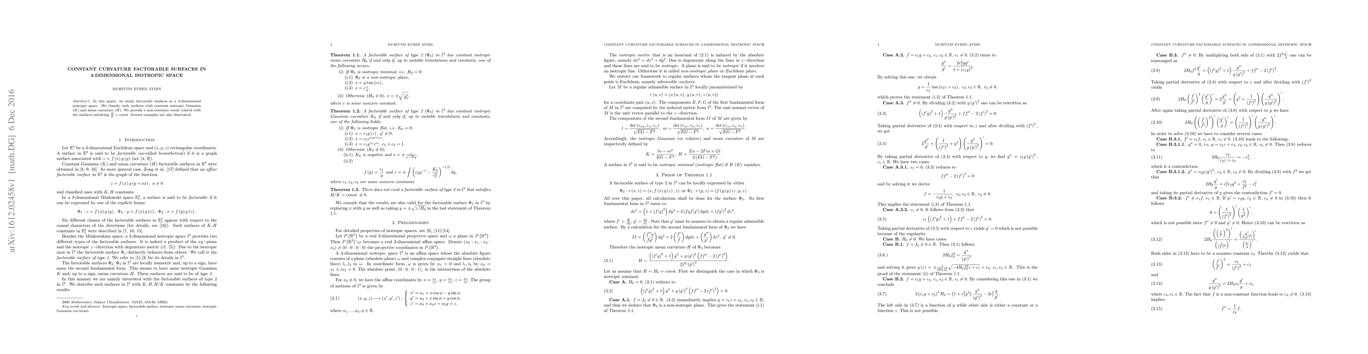 This paper classifies factorable surfaces in 3-dimensional isotropic space with constant isotropic Gaussian and mean curvatures, and proves the non-existence of surfaces where the ratio of mean to Gaussian curvature is constant. Examples are provided to illustrate the findings.