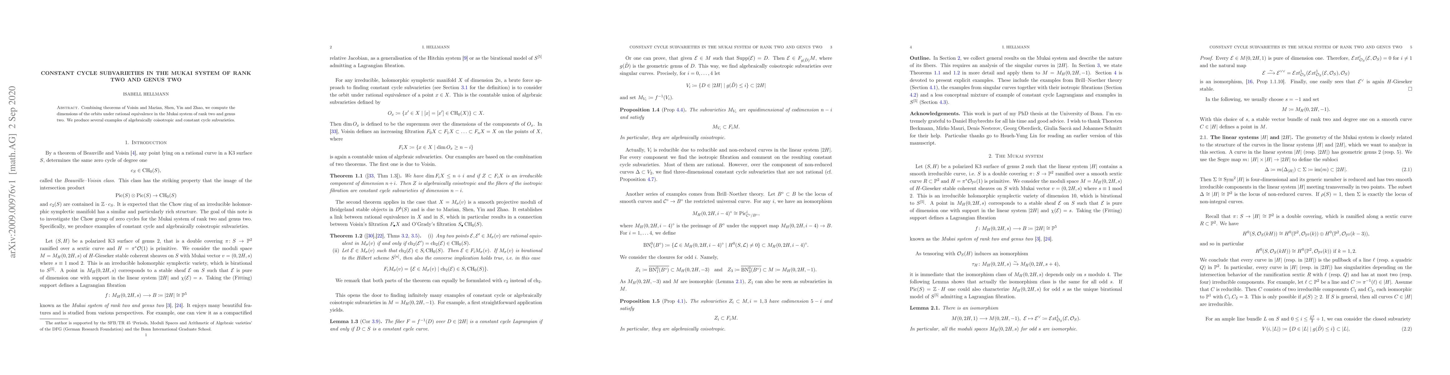 Combining theorems of Voisin and Marian, Shen, Yin and Zhao, we compute the dimensions of the orbits under rational equivalence in the Mukai system of rank two and genus two. We produce several examples of algebraically coisotropic and constant cycle subvarieties.