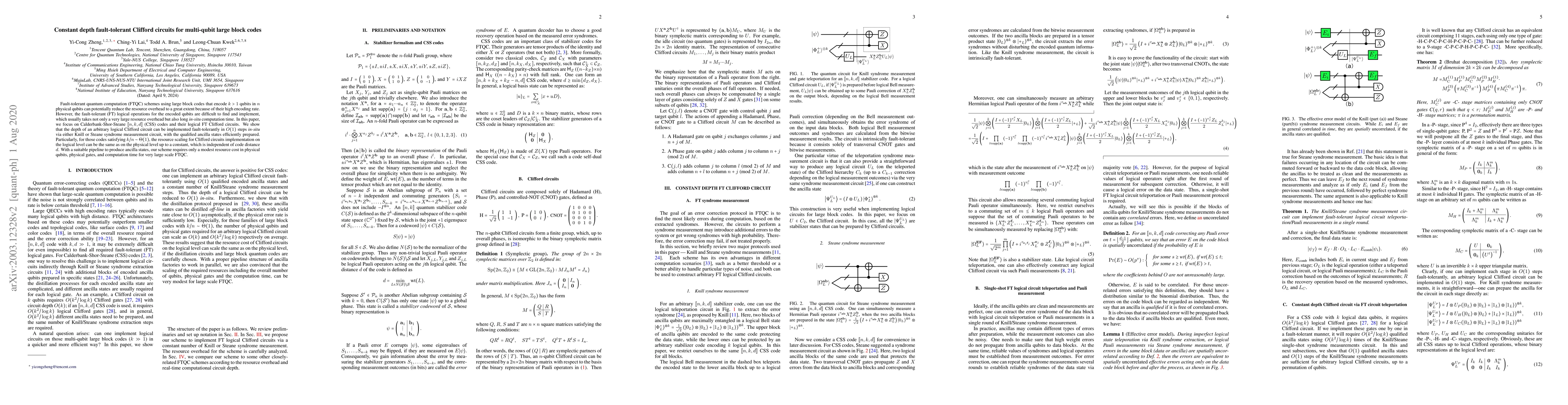 This paper proposes a method to implement constant depth fault-tolerant Clifford circuits for large block quantum codes, specifically CSS codes, using efficient syndrome measurement circuits. It demonstrates that these circuits can be executed in situ with minimal resource overhead and computation time, maintaining scalability for large-scale fault-tolerant quantum computation.