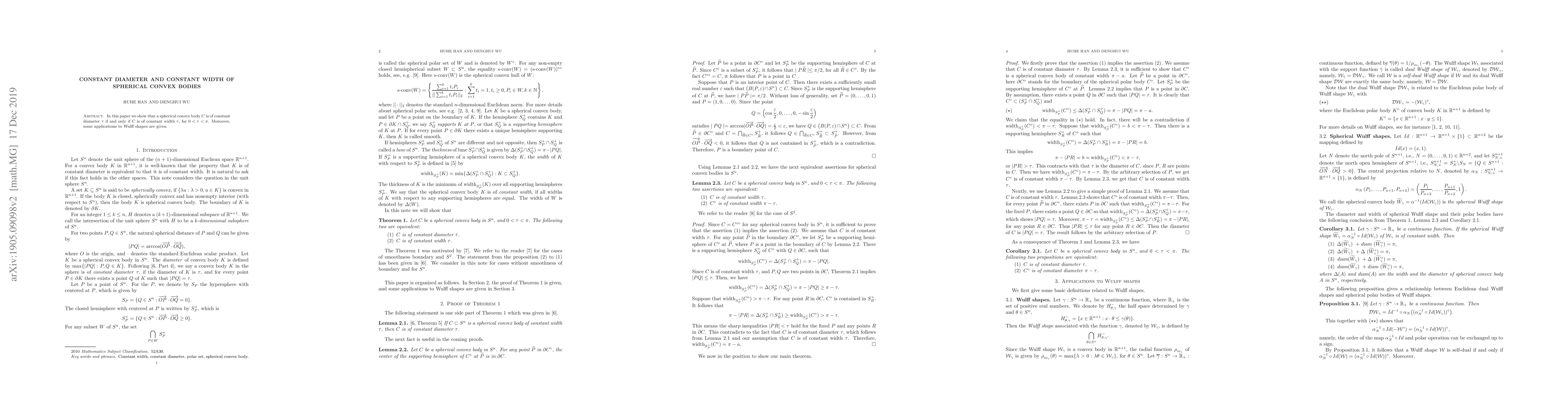 This paper demonstrates that a spherical convex body has a constant diameter $\tau$ if and only if it has a constant width $\tau$ for $0<\tau<\pi$. It also explores applications of this result to Wulff shapes.