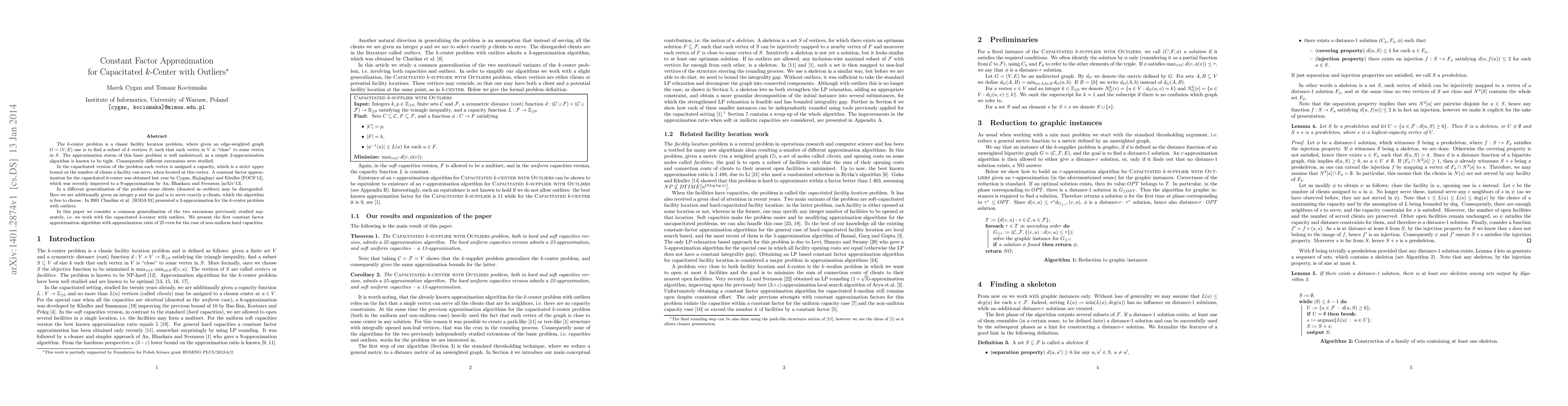 The $k$-center problem is a classic facility location problem, where given an edge-weighted graph $G = (V,E)$ one is to find a subset of $k$ vertices $S$, such that each vertex in $V$ is "close" to some vertex in $S$. The approximation status of this basic problem is well understood, as a simple 2-approximation algorithm is known to be tight. Consequently different extensions were studied. In the capacitated version of the problem each vertex is assigned a capacity, which is a strict upper bound on the number of clients a facility can serve, when located at this vertex. A constant factor approximation for the capacitated $k$-center was obtained last year by Cygan, Hajiaghayi and Khuller [FOCS'12], which was recently improved to a 9-approximation by An, Bhaskara and Svensson [arXiv'13]. In a different generalization of the problem some clients (denoted as outliers) may be disregarded. Here we are additionally given an integer $p$ and the goal is to serve exactly $p$ clients, which the algorithm is free to choose. In 2001 Charikar et al. [SODA'01] presented a 3-approximation for the $k$-center problem with outliers. In this paper we consider a common generalization of the two extensions previously studied separately, i.e. we work with the capacitated $k$-center with outliers. We present the first constant factor approximation algorithm with approximation ratio of 25 even for the case of non-uniform hard capacities.