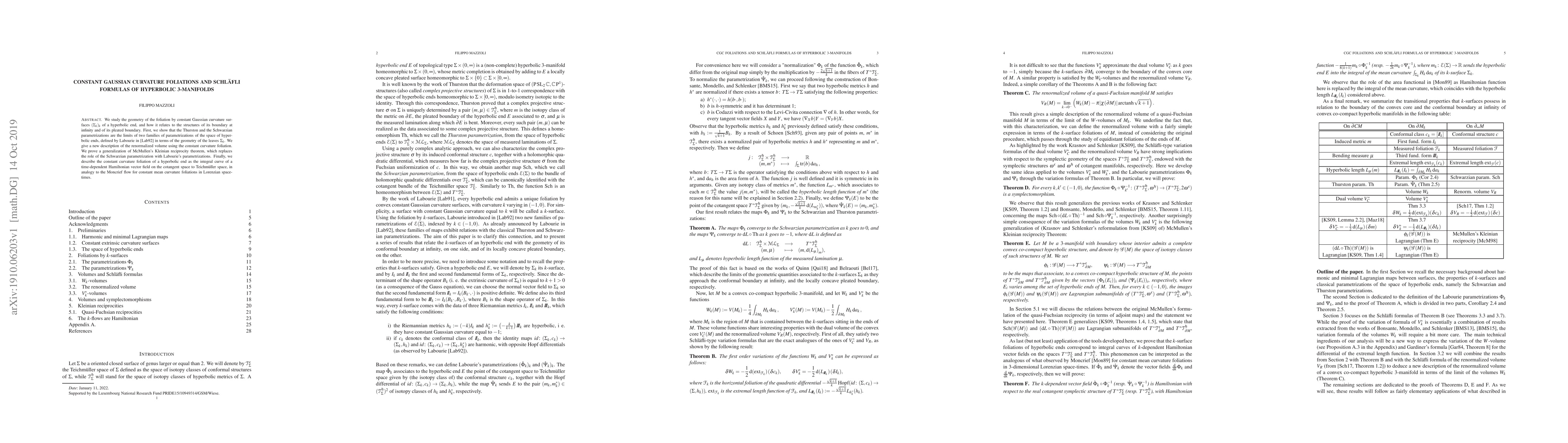 This paper explores the geometry of hyperbolic 3-manifolds through constant Gaussian curvature foliations, demonstrating their connection to boundary structures and proving a generalization of McMullen's reciprocity theorem using Labourie's parametrizations. It also describes the constant curvature foliation as an integral curve in Teichmüller space.