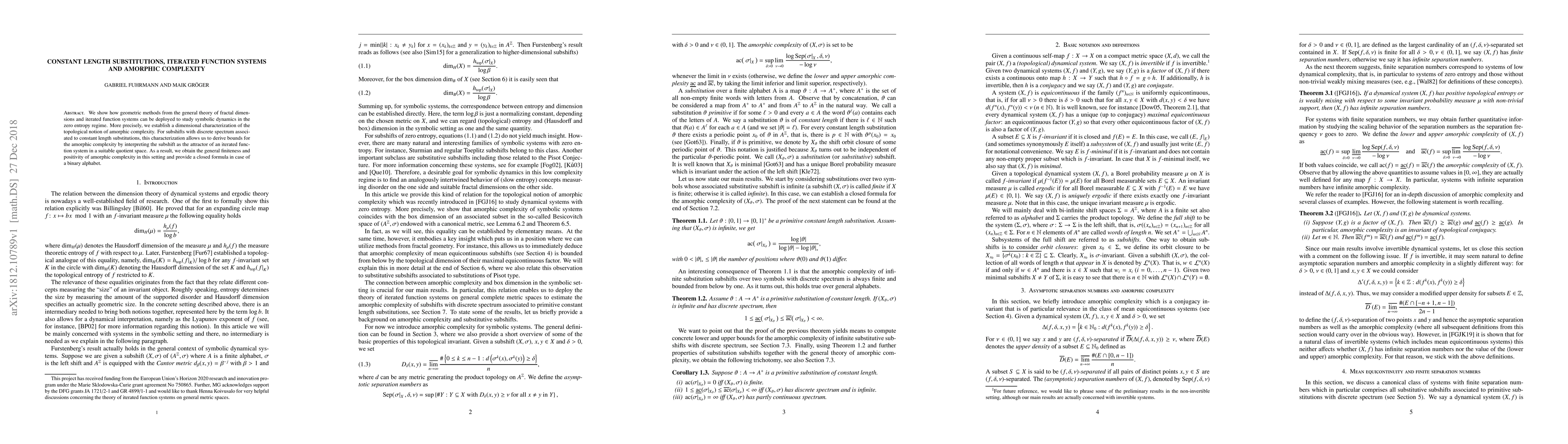 We show how geometric methods from the general theory of fractal dimensions and iterated function systems can be deployed to study symbolic dynamics in the zero entropy regime. More precisely, we establish a dimensional characterization of the topological notion of amorphic complexity. For subshifts with discrete spectrum associated to constant length substitutions, this characterization allows us to derive bounds for the amorphic complexity by interpreting the subshift as the attractor of an iterated function system in a suitable quotient space. As a result, we obtain the general finiteness and positivity of amorphic complexity in this setting and provide a closed formula in case of a binary alphabet.