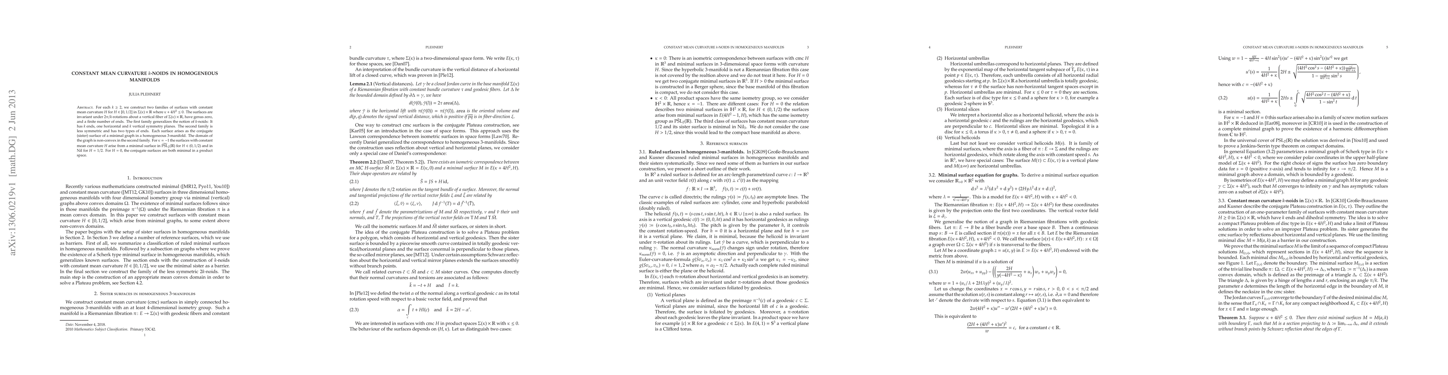 This paper constructs two families of constant mean curvature surfaces in homogeneous manifolds $\Sigma(\kappa)\times\R$ with $k$ rotational symmetries, generalizing $k$-noids. The surfaces arise as conjugate surfaces to minimal graphs, with specific cases arising from minimal surfaces in $\widetilde{\PSL}_2(\R)$ and $\Nil$.