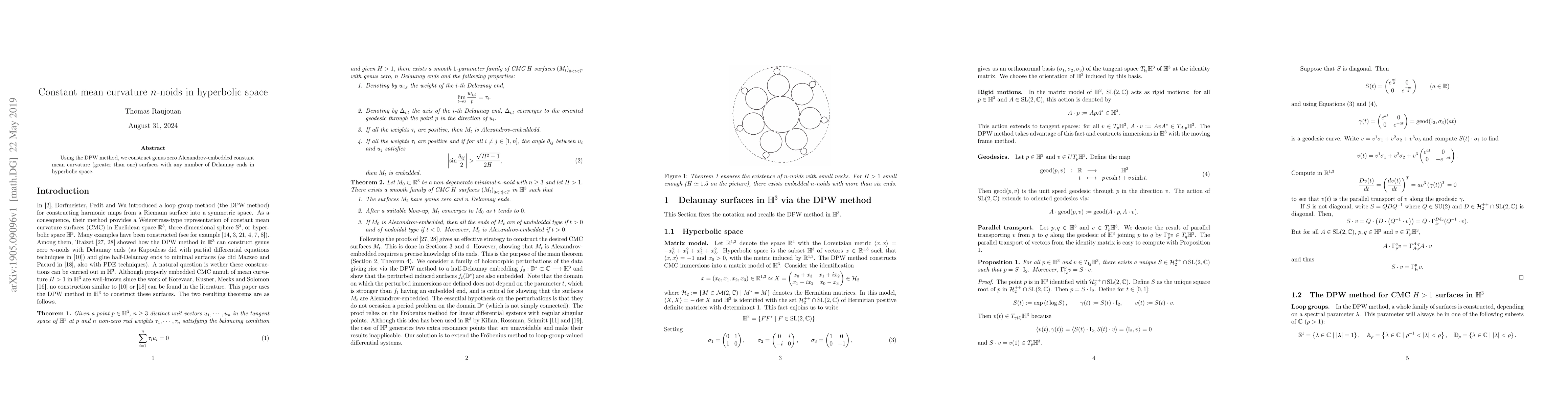 Summary: The paper constructs genus zero, Alexandrov-embedded constant mean curvature surfaces with multiple Delaunay ends in hyperbolic space using the DPW method, focusing on surfaces with mean curvature greater than one.