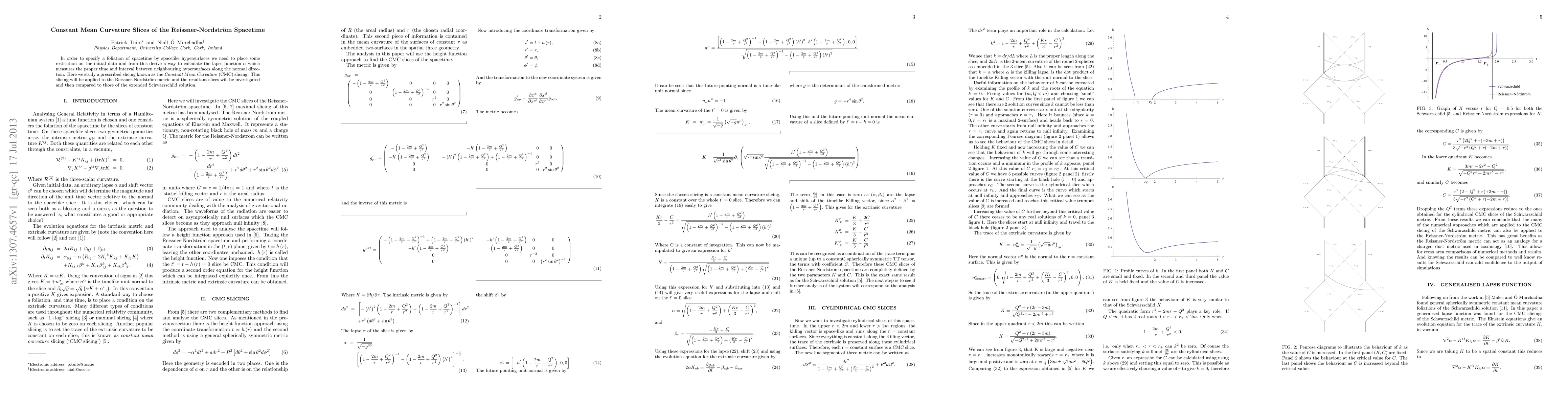 In order to specify a foliation of spacetime by spacelike hypersurfaces we need to place some restriction on the initial data and from this derive a way to calculate the lapse function $\alpha$ which measures the proper time and interval between neighbouring hypersurfaces along the normal direction. Here we study a prescribed slicing known as the Constant Mean Curvature (CMC) slicing. This slicing will be applied to the Reissner-Nordstr\"{o}m metric and the resultant slices will be investigated and then compared to those of the extended Schwarzschild solution.