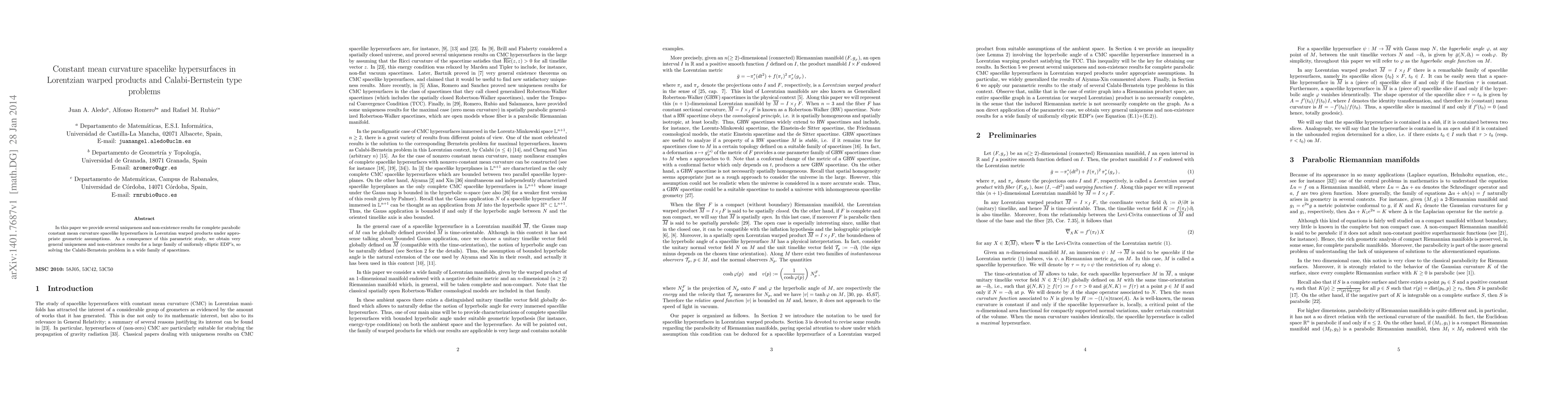 This paper establishes uniqueness and non-existence results for complete spacelike hypersurfaces with constant mean curvature in Lorentzian warped products, leading to generalized Calabi-Bernstein type solutions for a wide range of uniformly elliptic equations in various spacetimes.