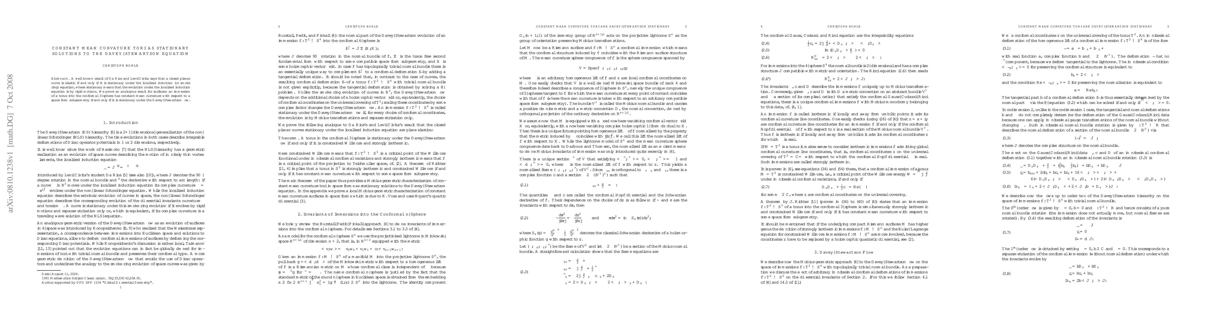 Summary: This paper proves that tori with constant mean curvature in the conformal 3-sphere are stationary solutions to the Davey-Stewartson equation, analogous to how elastic closed curves are stationary under the localized induction equation. The result extends the Da Rios and Levi-Civita theorem to surfaces.