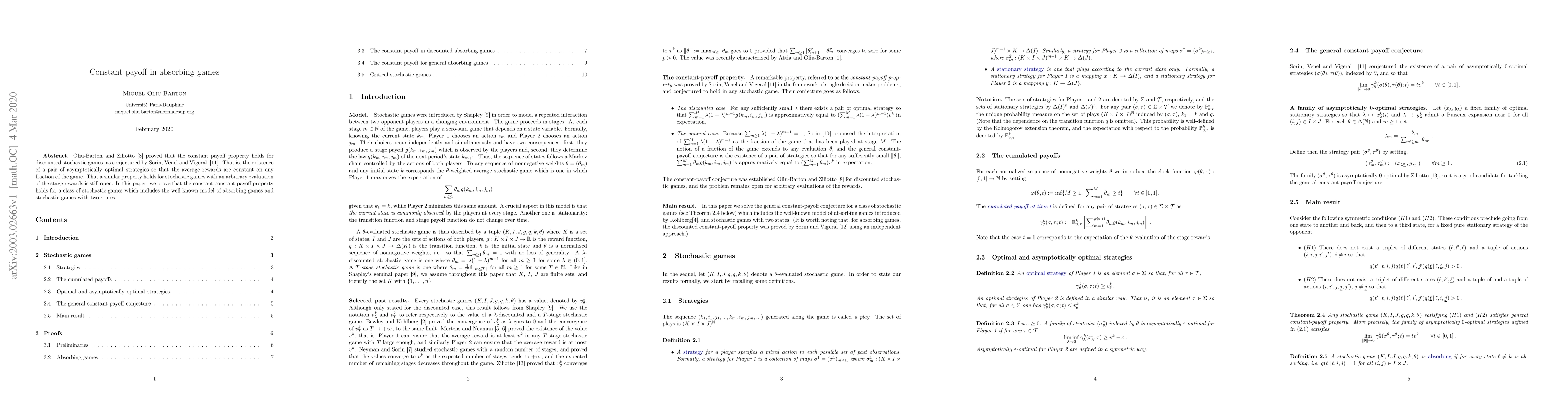 Bruno Ziliotto, Miquel Oliu-Barton, Olivier Catoni