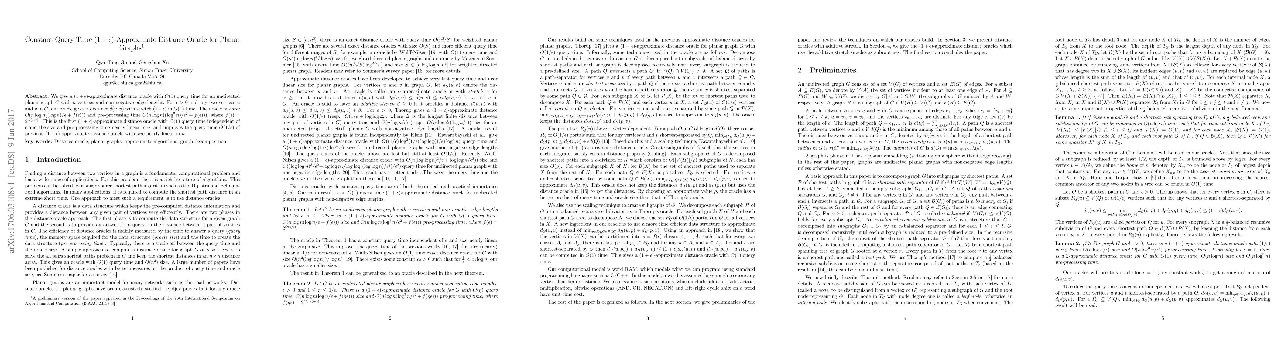 This paper presents a $(1+\epsilon)$-approximate distance oracle for planar graphs that provides constant query time $O(1)$, with nearly linear size and preprocessing time. The oracle achieves a stretch factor of $(1+\epsilon)$ and improves upon previous methods by eliminating the dependency on $\epsilon$ in query time.