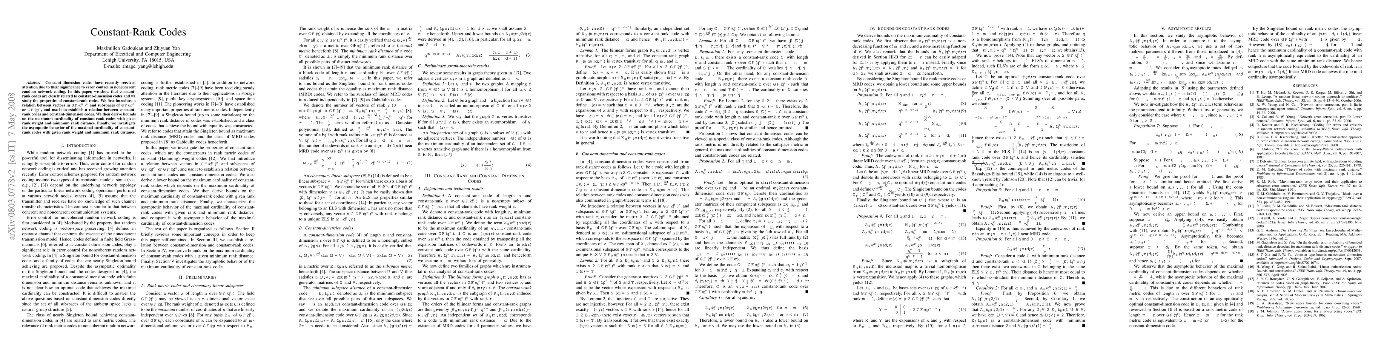 Constant-dimension codes have recently received attention due to their significance to error control in noncoherent random network coding. In this paper, we show that constant-rank codes are closely related to constant-dimension codes and we study the properties of constant-rank codes. We first introduce a relation between vectors in $\mathrm{GF}(q^m)^n$ and subspaces of $\mathrm{GF}(q)^m$ or $\mathrm{GF}(q)^n$, and use it to establish a relation between constant-rank codes and constant-dimension codes. We then derive bounds on the maximum cardinality of constant-rank codes with given rank weight and minimum rank distance. Finally, we investigate the asymptotic behavior of the maximal cardinality of constant-rank codes with given rank weight and minimum rank distance.