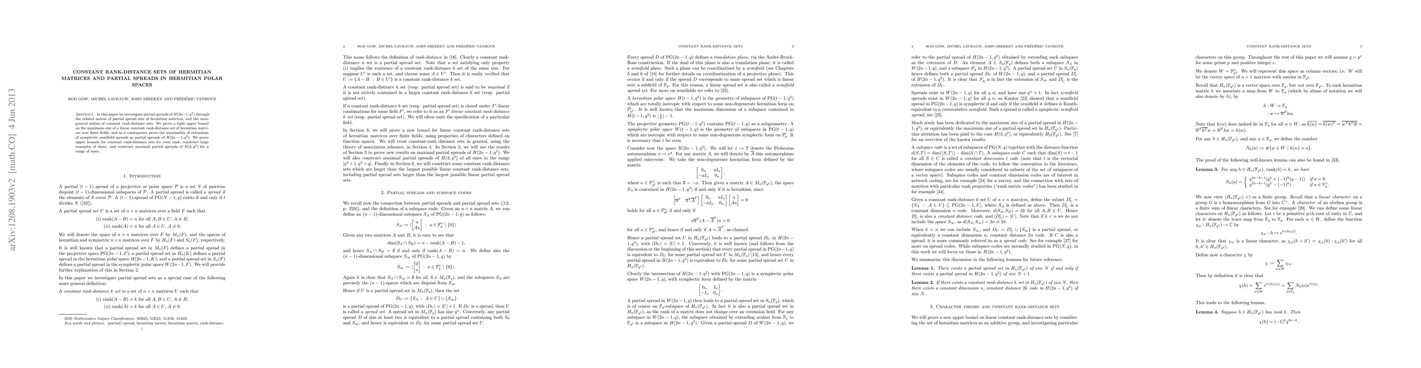 In this paper we investigate partial spreads of $H(2n-1,q^2)$ through the related notion of partial spread sets of hermitian matrices, and the more general notion of constant rank-distance sets. We prove a tight upper bound on the maximum size of a linear constant rank-distance set of hermitian matrices over finite fields, and as a consequence prove the maximality of extensions of symplectic semifield spreads as partial spreads of $H(2n-1,q^2)$. We prove upper bounds for constant rank-distance sets for even rank, construct large examples of these, and construct maximal partial spreads of $H(3,q^2)$ for a range of sizes.