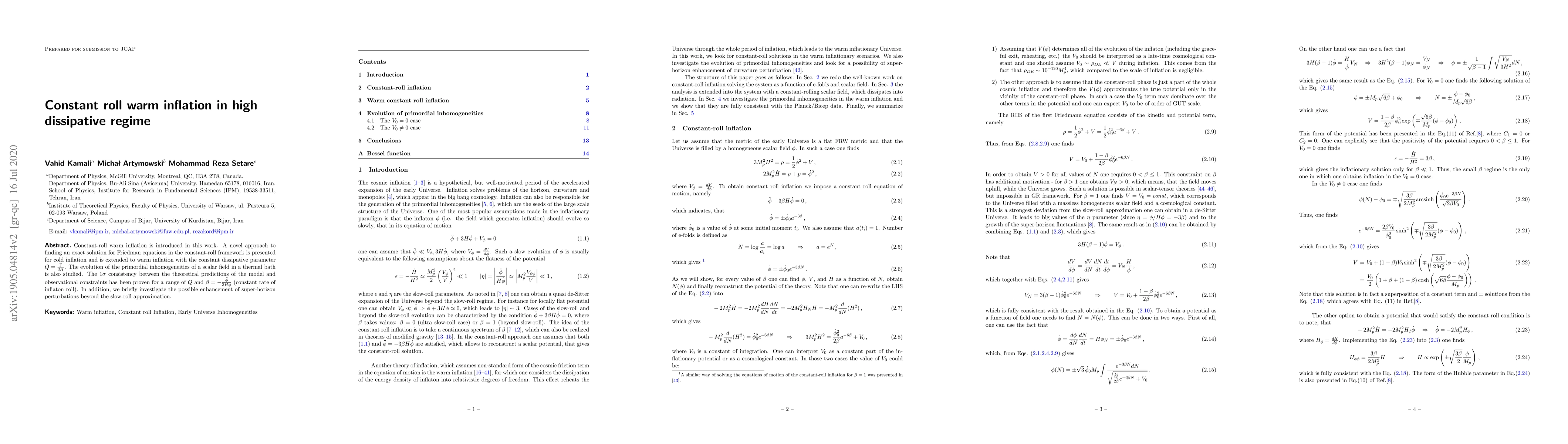 This paper explores constant-roll warm inflation, presenting an exact solution for Friedman equations coupled to a scalar field in a thermal bath, and demonstrates consistency with observational data. It also investigates the enhancement of super-horizon perturbations beyond the slow-roll approximation.